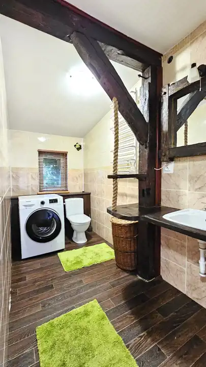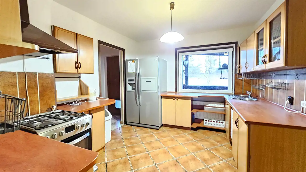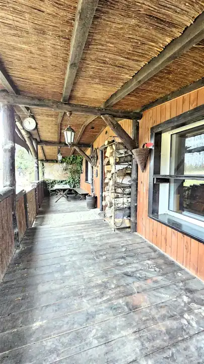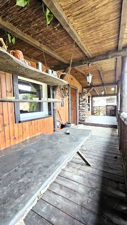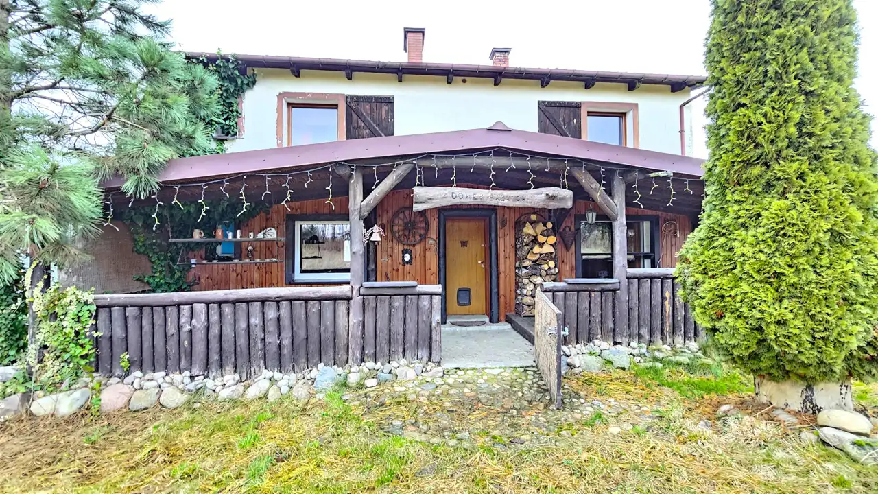Stylowy, nietuzinkowy dom jednorodzinny, dwukondygnacyjny, podpiwniczony o powierzchni użytkowej 149m2 położony w Kaninie. Usytuowany na ogrodzonej w stylu „starej zagrody” ładnej działce o pow. 5300m2, z możliwością podziału na dwie odrębne parcele - idealne rozwiązanie dla inwestorów lub osób planujących sprzedaż części terenu. Podzielonej na część rekreacyjną, na której znajduje się duża altana ze światłem, miejsce z ławkami do biesiadowania przy ognisku, huśtawkami, hamakami, placem zabaw dla dzieci i wypoczynku. W drugiej części działki posadowiony jest budynek gospodarczy, kojec dla psów, duży plac dla wjeżdżających samochodów oraz ładna drewutnia przylegająca do domu. Składa się on z niebanalnego, drewnianego ganku (na którym można gościć się w ciepłe dni), holu prowadzącego do zabudowanej kuchni (wliczonej w cenę domu!), łazienki, wc oraz dużego stylowego i urzekającego salonu, w którym na suficie znajdują się odrestaurowane belki (dom wybudowany został w latach xx ubiegłego wieku - przebudowany w połowie lat 90, a w 2004r przeszedł generalny remont). Ponadto w salonie znajduje się kominek z płaszczem wodnym ogrzewający podłogę na parterze wyłożoną terakotą + grzejniki we wszystkich pokojach oraz bojler na ciepłą wodą. Dom można ogrzewać również gazem (nowa instalacja). Na drugą kondygnację prowadzą drewniane schody, gdzie znajduje się przestrzenny hol, pełniący rolę pokoju dziennego (można zrobić zamknięty pokój), trzy pokoje (jeden przerobiony na garderobę), łazienka i wyjście na balkon. Ponadto do nieruchomości przynależy piwnica z kamienia oraz strych. Reasumując, cała posesja prezentuje się dobrze, nie wymaga natychmiastowych nakładów finansowych, można od razu zamieszkać a z czasem aranżować pod swój gust. Ze względu na położenie (do Lęborka niecałe 6,5km - 9 min drogi) - idealne miejsce dla osób żyjących w ciągłym stresie, zmęczonych codzienną gonitwą, którzy chcą odpoczywać w ciszy od zgiełku miejskiego na łonie przyrody opodal lasu oraz wspomniane walory, oferta jest godna polecenia.