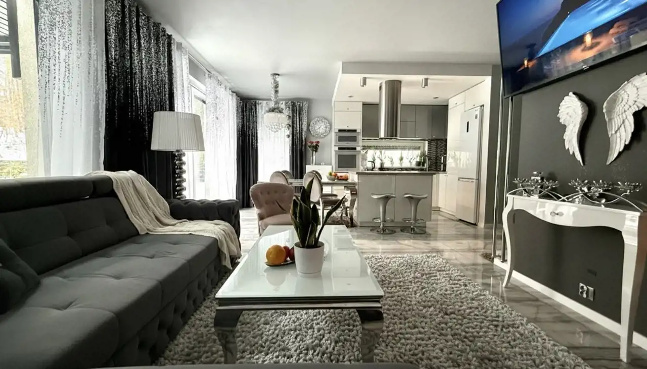 Taras: Wyjątkowo duży (45 m²), idealny do grillowania i wypoczynku na świeżym powietrzu.