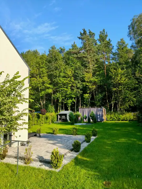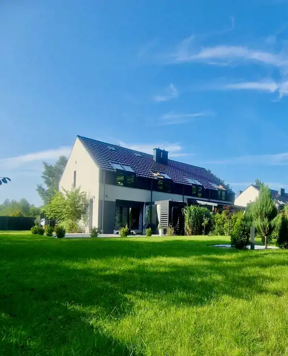 Oferuję na sprzedaż nowoczesny dom w zabudowie bliźniaczej, położony w miejscowości Ługi (powiat lęborski, gmina Lębork), w bezpośrednim sąsiedztwie Natury.