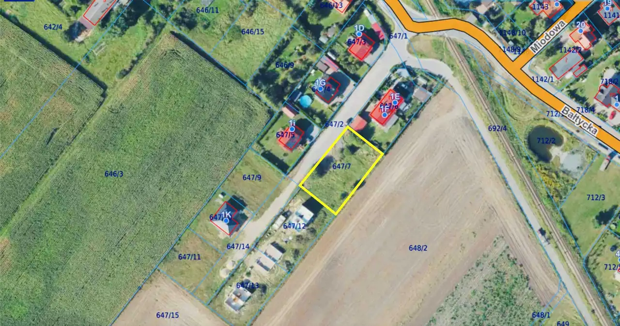 Powierzchnia działki wynosi 1057 m² – idealnie nasłoneczniona, z szerokim frontem, co otwiera możliwości nie tylko pod budowę domu jednorodzinnego, ale również pod inwestycję deweloperską – np. dom w zabudowie bliźniaczej. Takie parametry działki są dziś rzadkością na rynku.