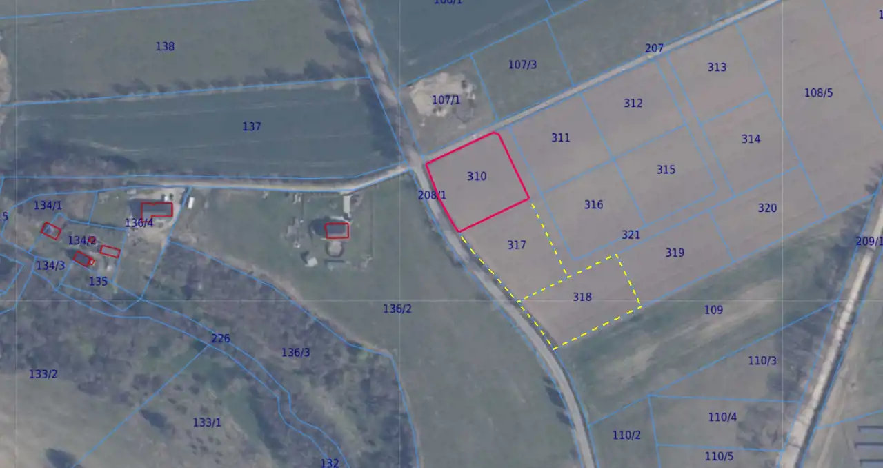 Uwaga!!! Istnieje możliwość powiększenia działki o następne przylegające parcele (widoczne na rzucie): dz. nr 317 o pow. 3004m2, dz. nr 318 o pow. 3003m2.
