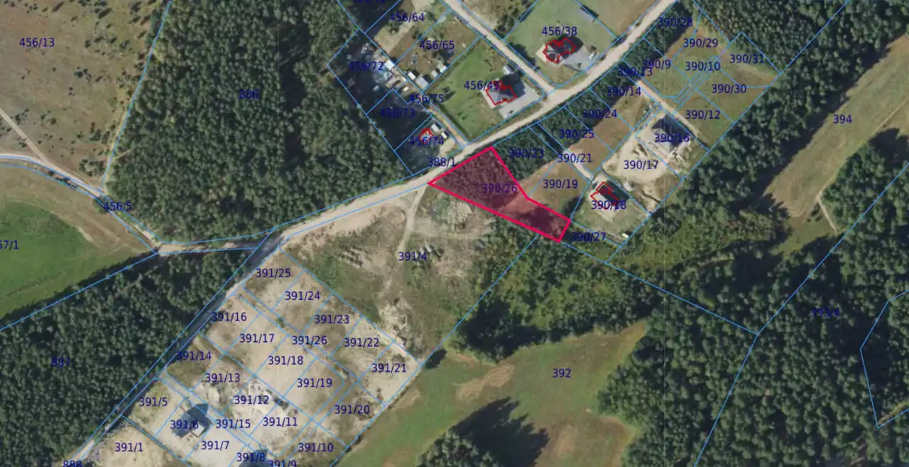 - Media Woda: brak; Kanalizacja: brak; Prąd: w ulicy; Gaz: brak
