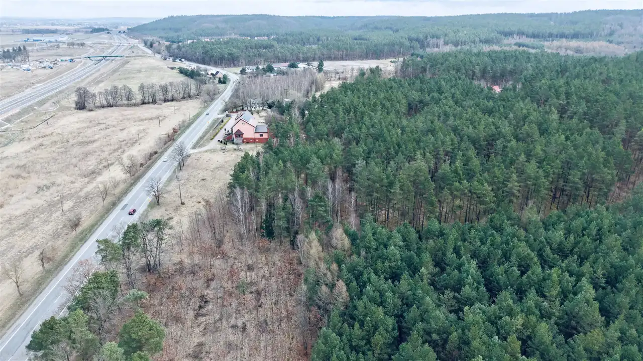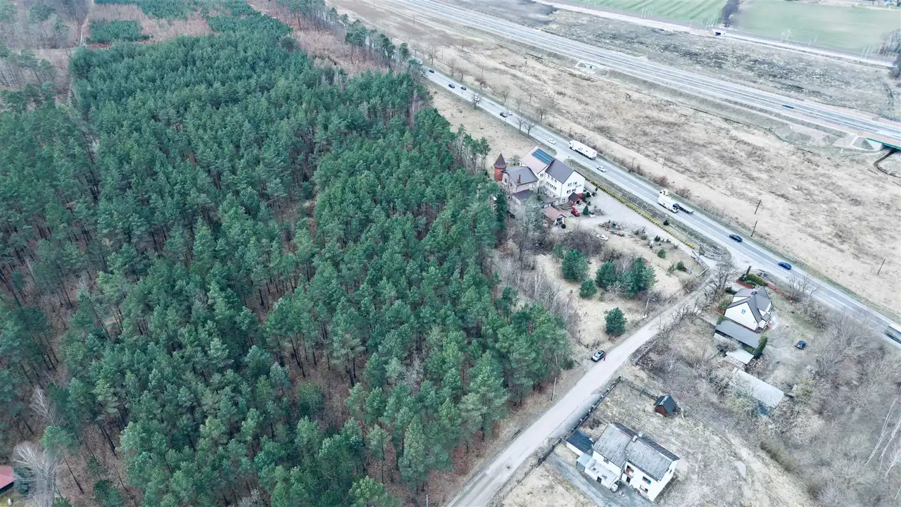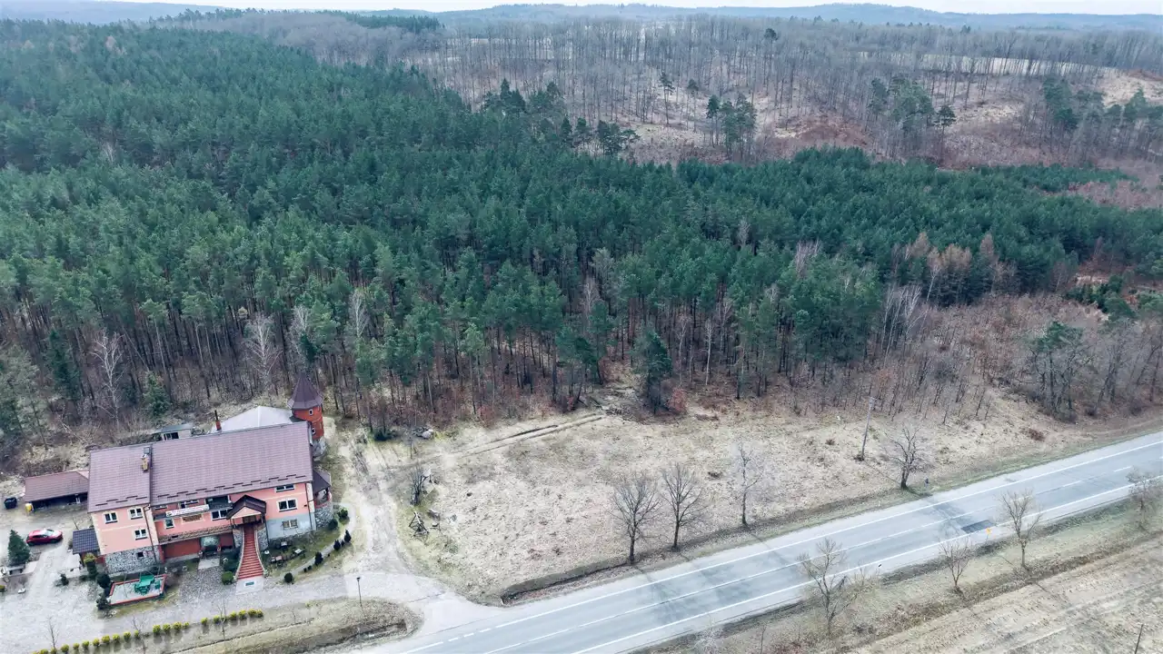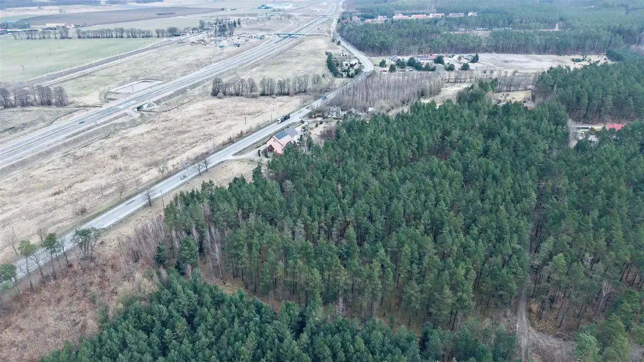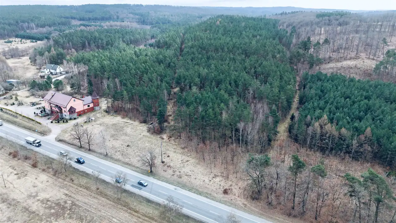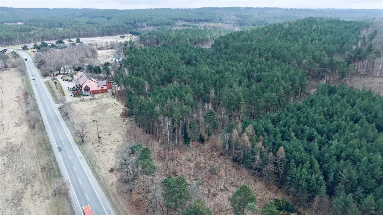 Przedmiotem sprzedaży są dwie działki o łącznej powierzchni 29 674 m², w tym teren o charakterze budowlanym oraz rozległa część leśna z naturalnym lasem sosnowym. Taka struktura nieruchomości sprawia, że oferta może zainteresować zarówno inwestorów, jak i osoby poszukujące większego terenu pod własne plany.