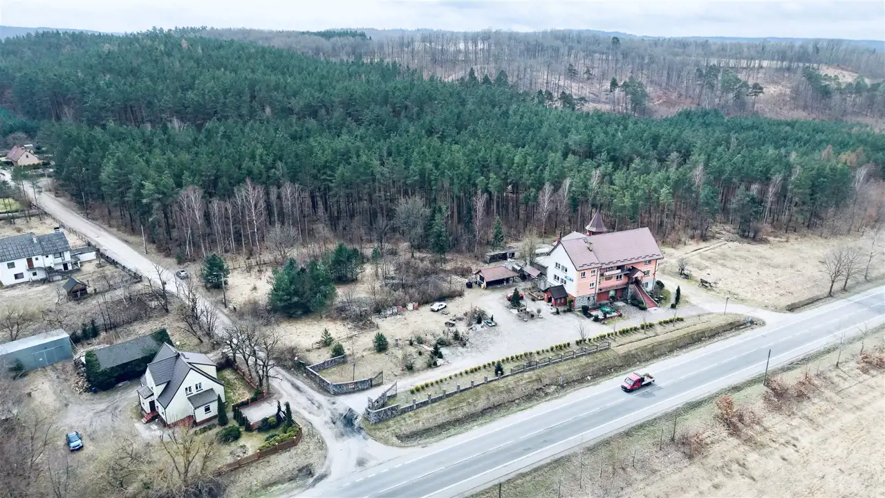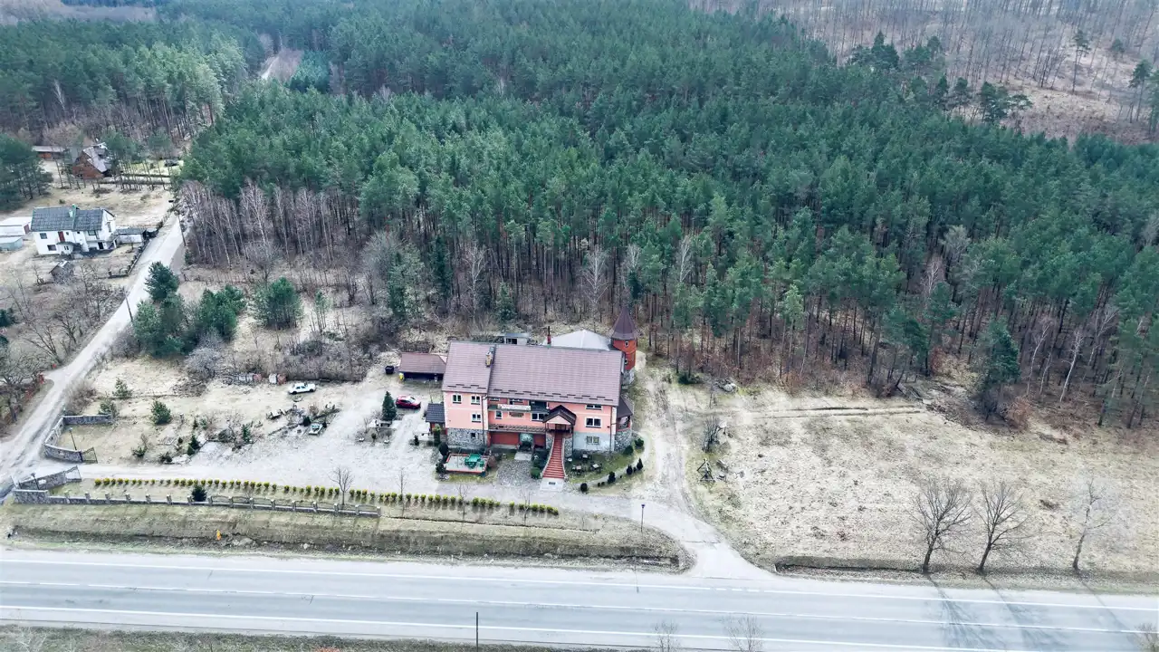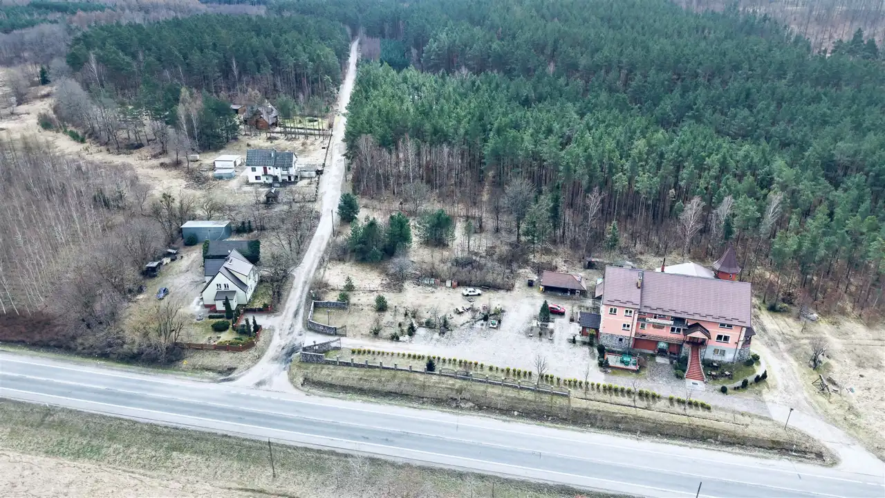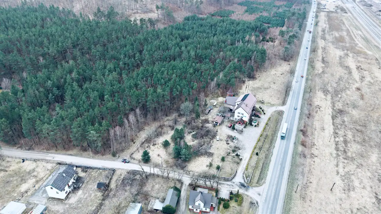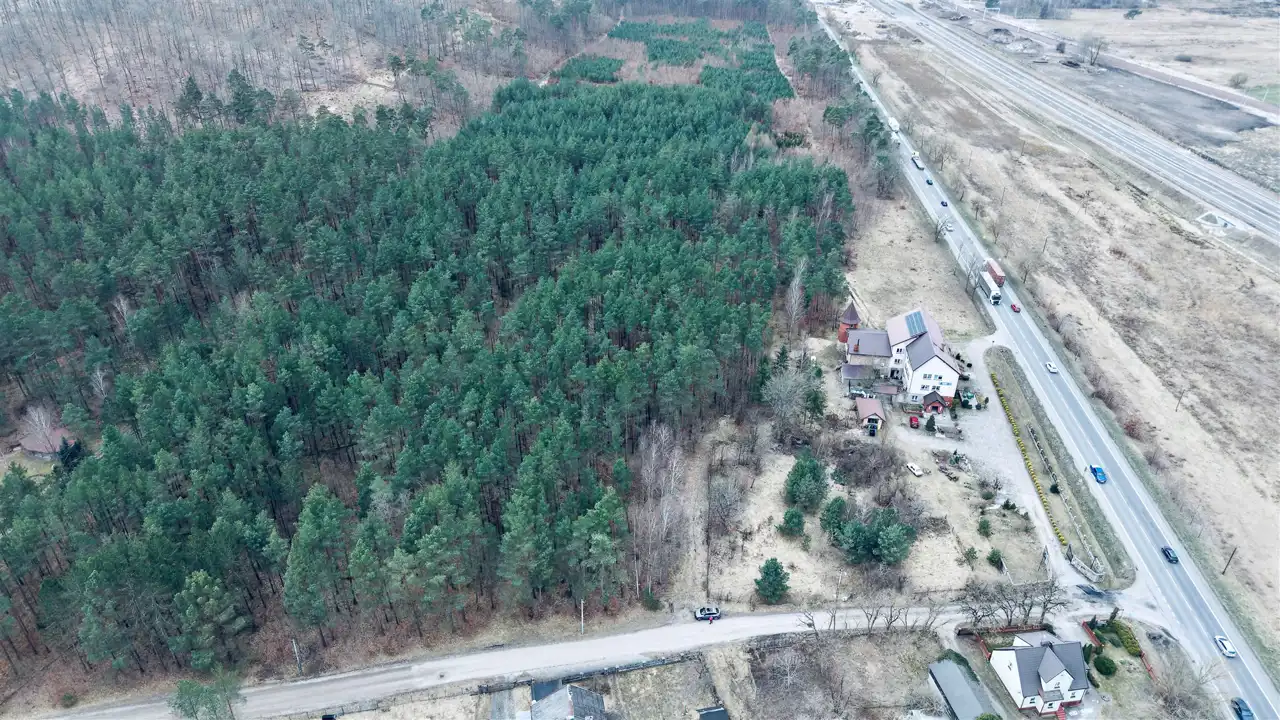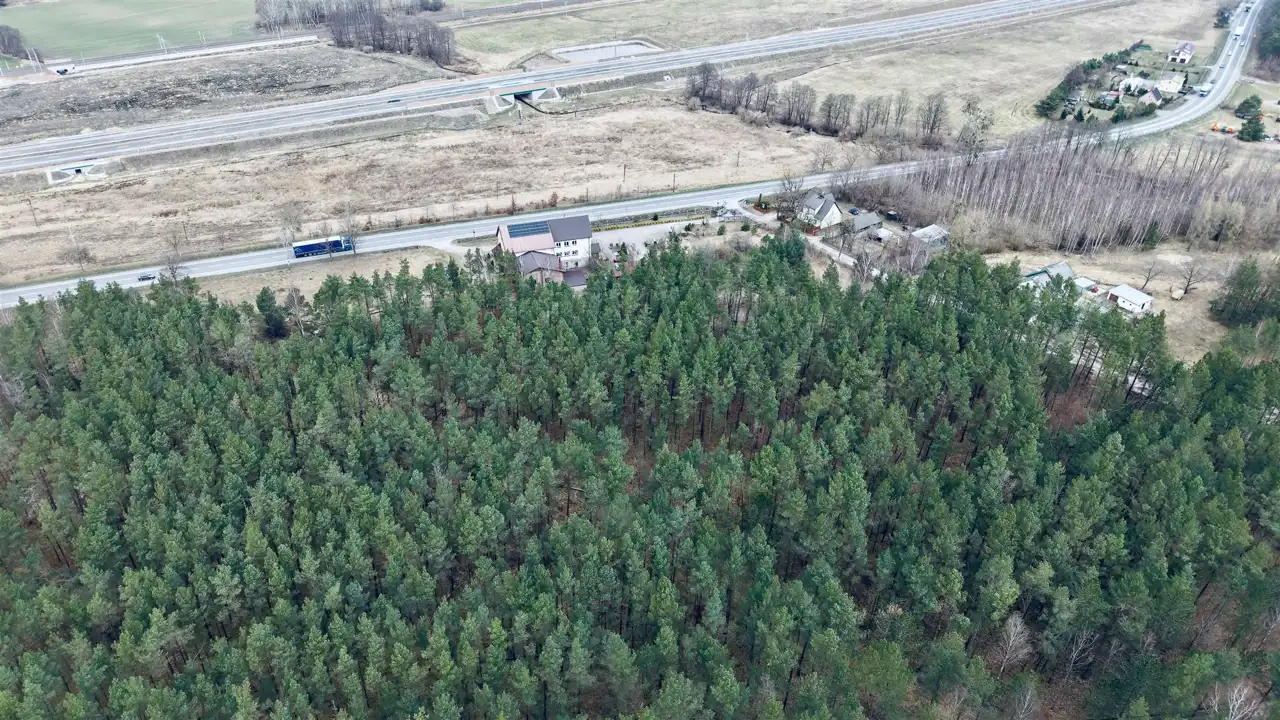 Przedmiotem sprzedaży są dwie działki o łącznej powierzchni 29 674 m², w tym teren o charakterze budowlanym oraz rozległa część leśna z naturalnym lasem sosnowym. Taka struktura nieruchomości sprawia, że oferta może zainteresować zarówno inwestorów, jak i osoby poszukujące większego terenu pod własne plany.