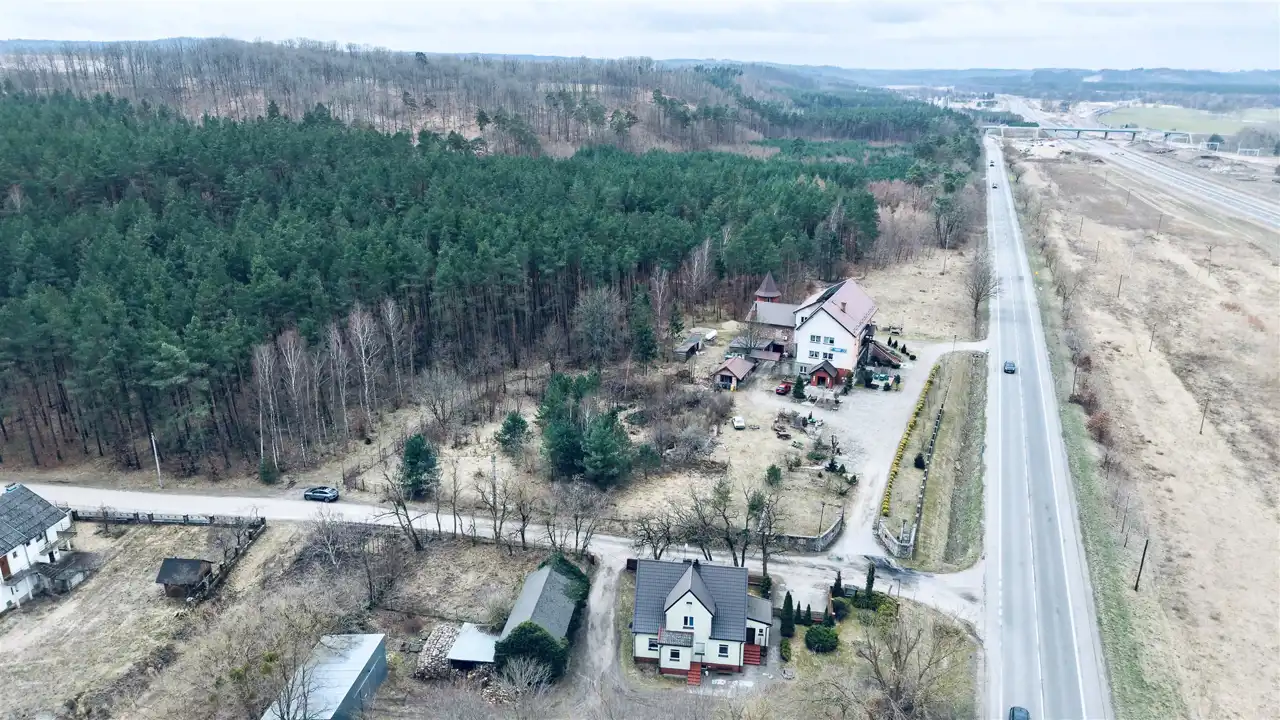 Jednym z największych atutów tej nieruchomości jest jej położenie. To działka na sprzedaż koło Lęborka, usytuowana przy ważnym ciągu komunikacyjnym, z dogodnym połączeniem z nową trasą S6 oraz w pobliżu węzłów Leśnice i Pogorzelice. W praktyce oznacza to wygodny dojazd, coraz lepszą komunikację i lokalizację, która może zyskiwać na znaczeniu również w przyszłości.