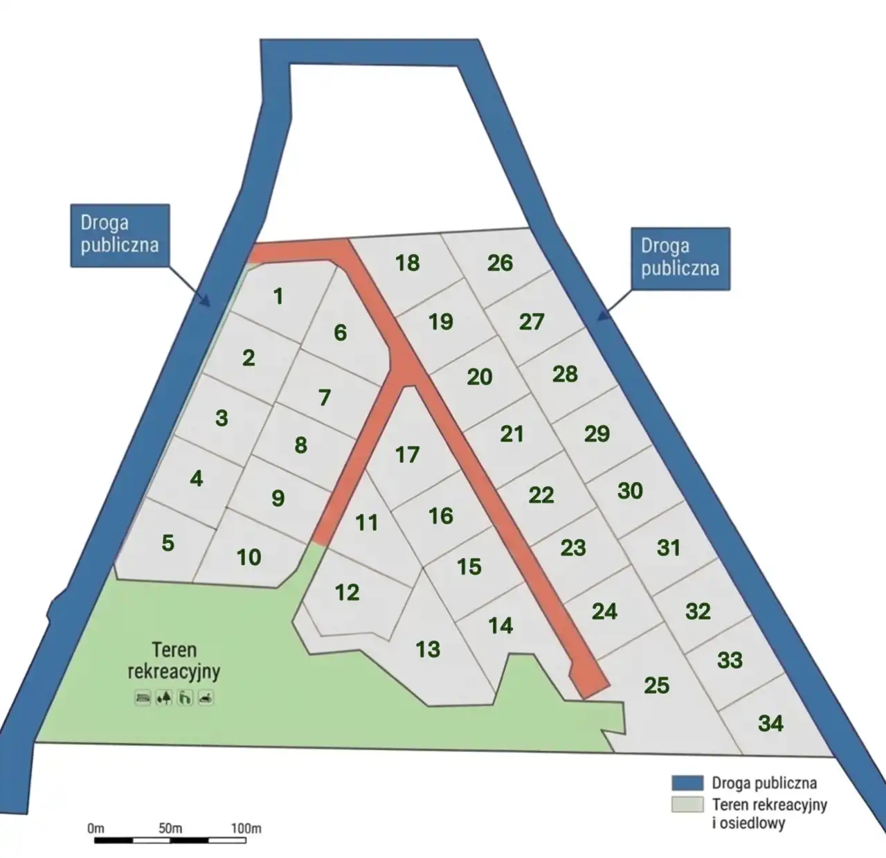 Oferta obejmuję działki o powierzchni od 1001 do 2138 m2 zlokalizowane w malowniczej okolicy, w bezpośrednim sąsiedztwie lasu, przy drodze gminnej i powiatowej na nowo projektowanym osiedlu 34 domów jednorodzinnych wolnostojących. W niedalekiej odległości przebiega Trasa Kaszubska stanowiąca doskonałe połączenie komunikacyjne z Lęborkiem, Trójmiastem i Słupskiem.