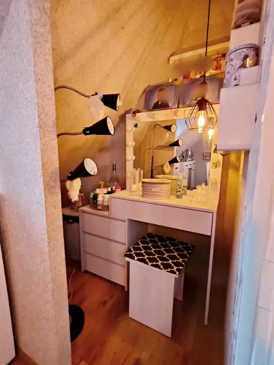 -Przytulny salon z wydzieloną toaletką – idealne miejsce do wypoczynku