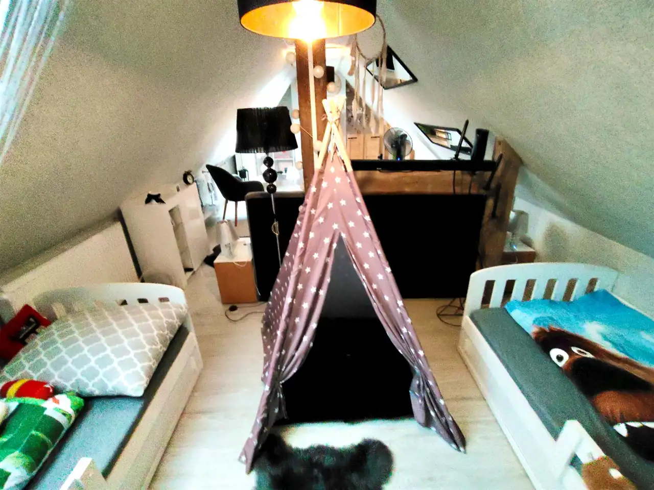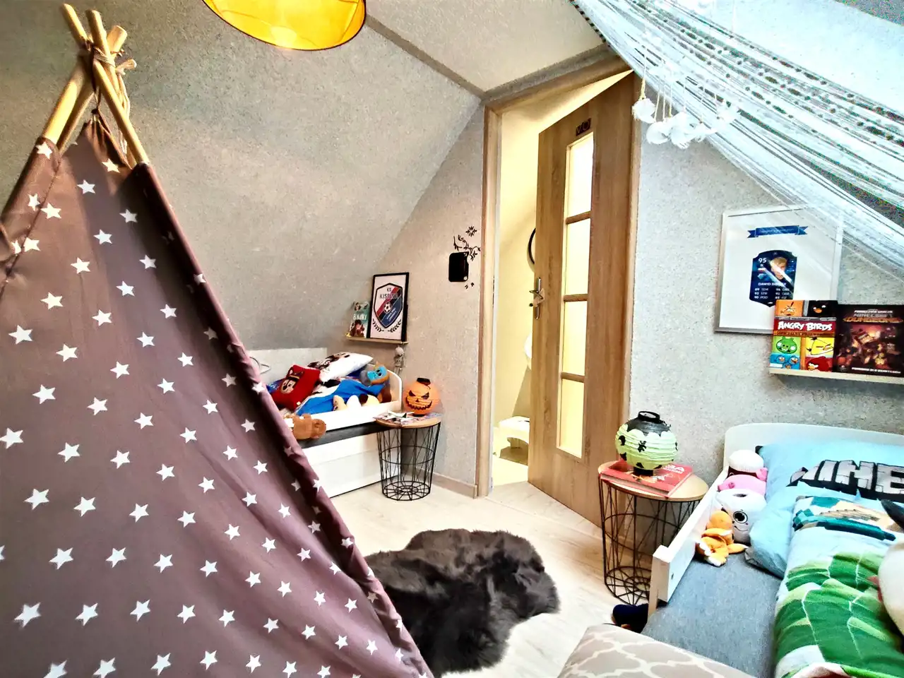 -Duża sypialnia z wydzieloną częścią sypialnianą dla dzieci
