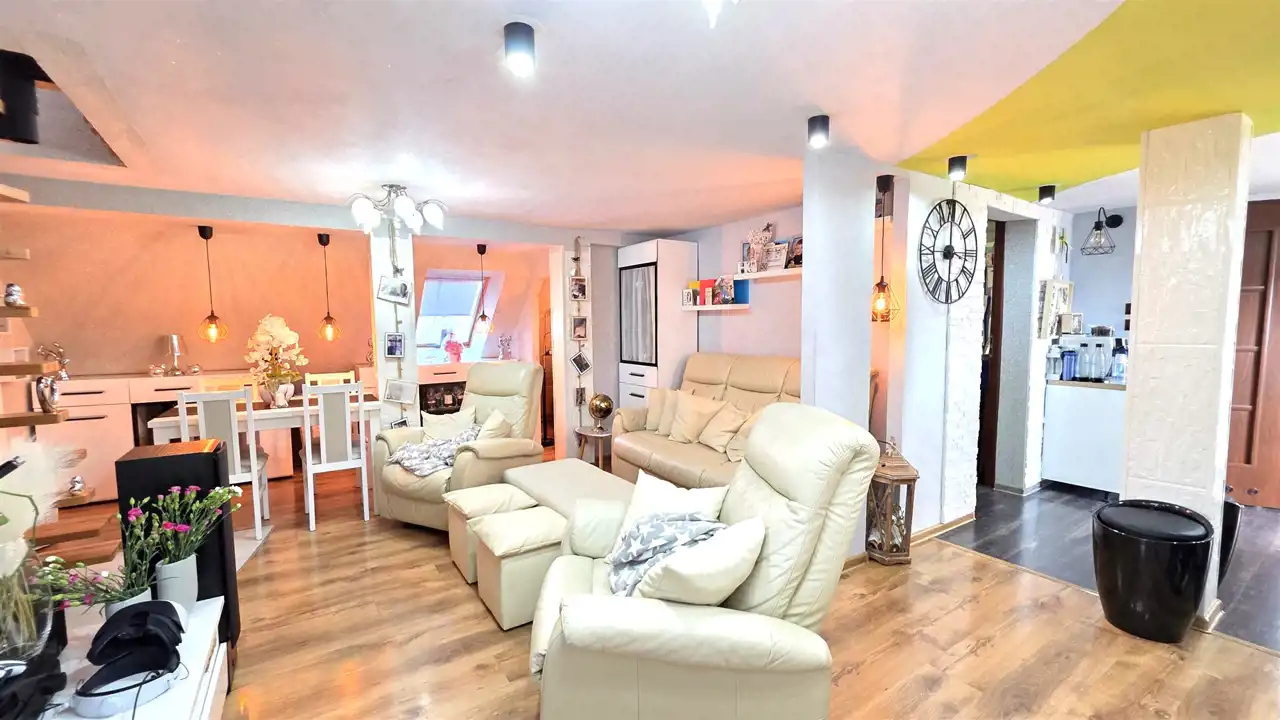 Bezczynszowe mieszkanie z użytkowym poddaszem o powierzchni użytkowej 47m2, całkowitej ok. 65m2, usytuowane na pierwszym piętrze jednopiętrowego budynku czterorodzinnego. Położone opodal drogi krajowej 214 ( Lębork-Łeba), w niedalekiej odległości od centrum gminnej miejscowości Nowa Wieś Lęborska. Lokal nie wymaga nakładów finansowych, można od razu zamieszkać.