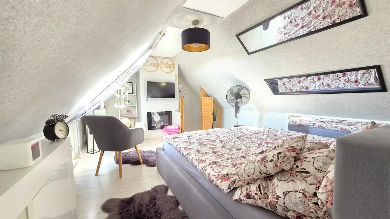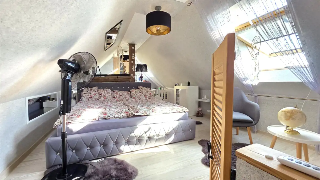 Poddasze: dodatkowa sypialnia z WC, w którym znajduje się pisuar