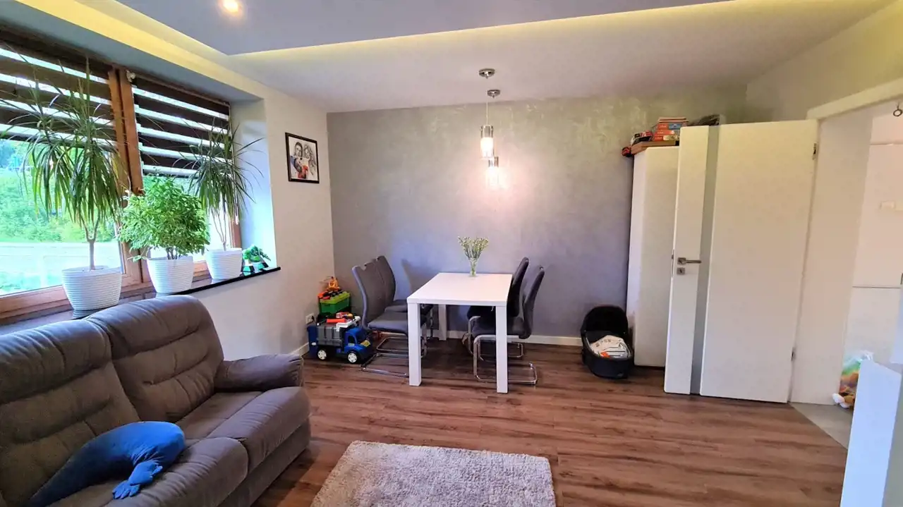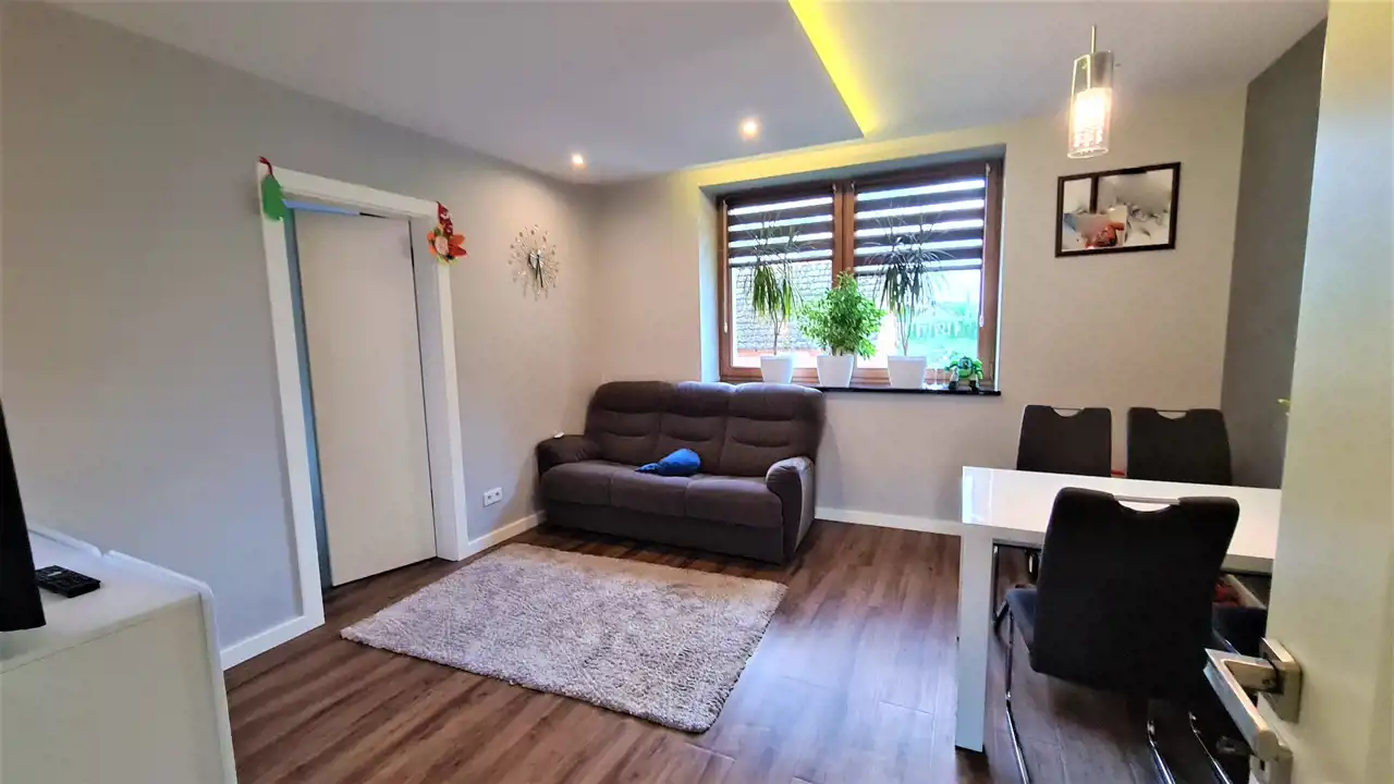 Ładne mieszkanie o powierzchni użytkowej 41,40m2, z wiatą garażową i ogródkiem położone w Krępie Kaszubskiej (w 5 min. dotrzemy samochodem do gminnej miejscowości Nowa Wieś Lęborska), przy drodze asfaltowej (krajowej 214 Lębork-Łeba). Lokal usytuowany jest na wysokim parterze jednopiętrowego budynku wielorodzinnego, po remoncie elewacji i dociepleniu, co sprawia, że jest ciepły, energooszczędny. Nie wymaga nakładów finansowych, jest po remoncie, robiony "dla siebie", można od razu zamieszkać. Wymienione instalacje - elektryczne, hydrauliczne, okna PCV, drzwi zewnętrzne i wewnętrzne oraz podłogi (panele, gres). Kwatera składa się z przedpokoju połączonego z zabudowaną, w pełni wyposażoną otwartą kuchnią, pokoju dziennego, sypialni oraz łazienki z WC i prysznicem. W całym mieszkaniu zamontowane nowoczesne oświetlenie LED-owe. Do mieszkania przynależy również duża piwnica, budynek gospodarczy, wspomniany ogródek (ok. 50m2) oraz wiata garażowa wyłożona kostką. Całość prezentuje się bardzo dobrze. Nieruchomość jest idealna dla klientów chcących odpocząć od zgiełku miejskiego, jednocześnie mieszkając w niedalekiej odległości od miasta. Reasumując ze względu na super położenie, cenę oraz standard oferta jest godna polecenia.