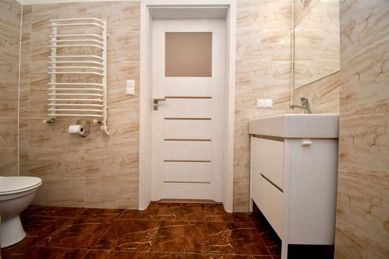 Łazienka z WC jest funkcjonalna i komfortowa.