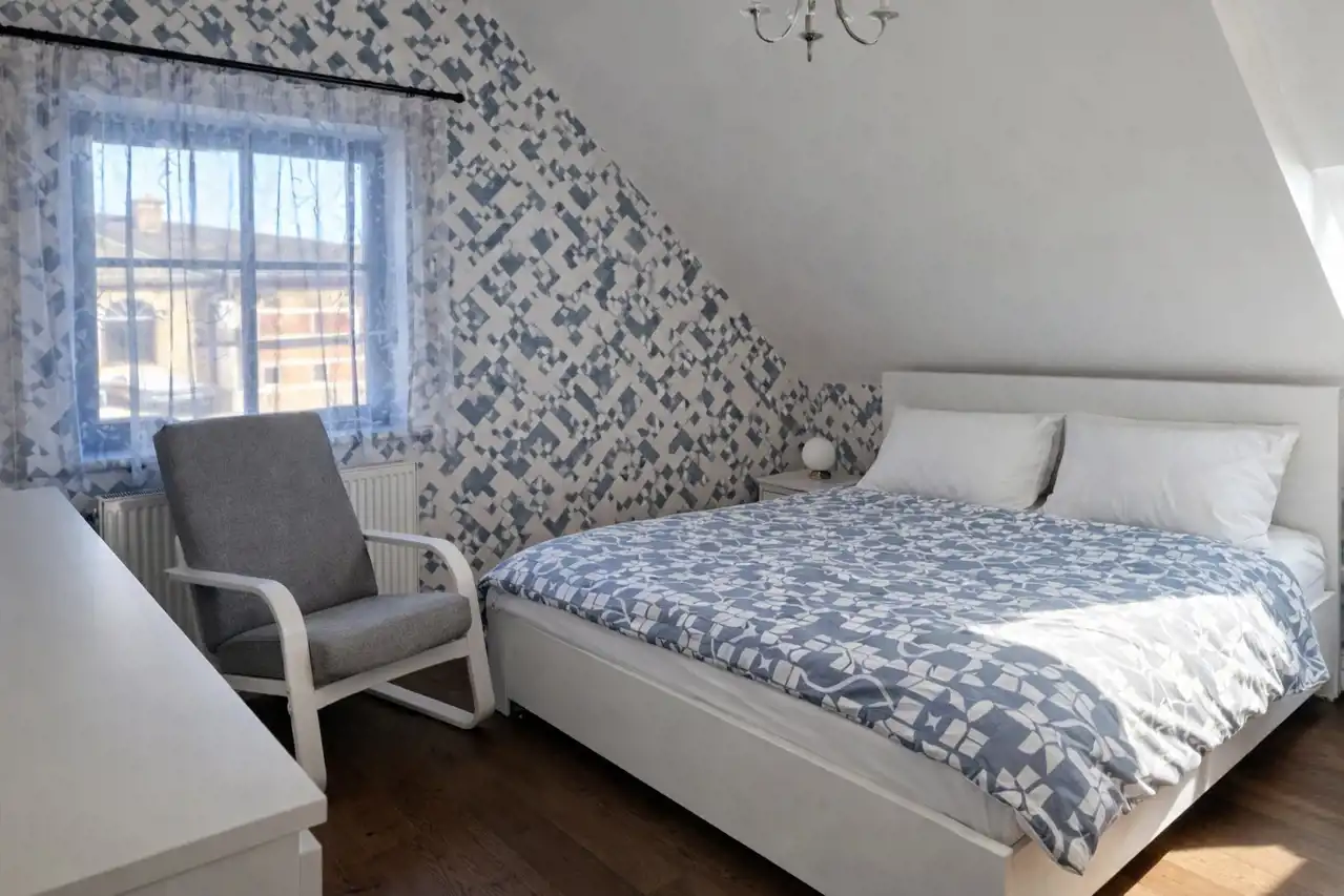 Dom został wybudowany w technologii betonu komórkowego Solbet i wyposażony w okna trzyszybowe, co zapewnia dobrą izolację termiczną i komfort użytkowania przez cały rok. Ogrzewanie zapewnia nowoczesna pompa ciepła, a dodatkowo zamontowana instalacja fotowoltaiczna pozwala znacząco obniżyć koszty utrzymania – roczne rachunki za prąd nie przekraczają około 5000 zł.