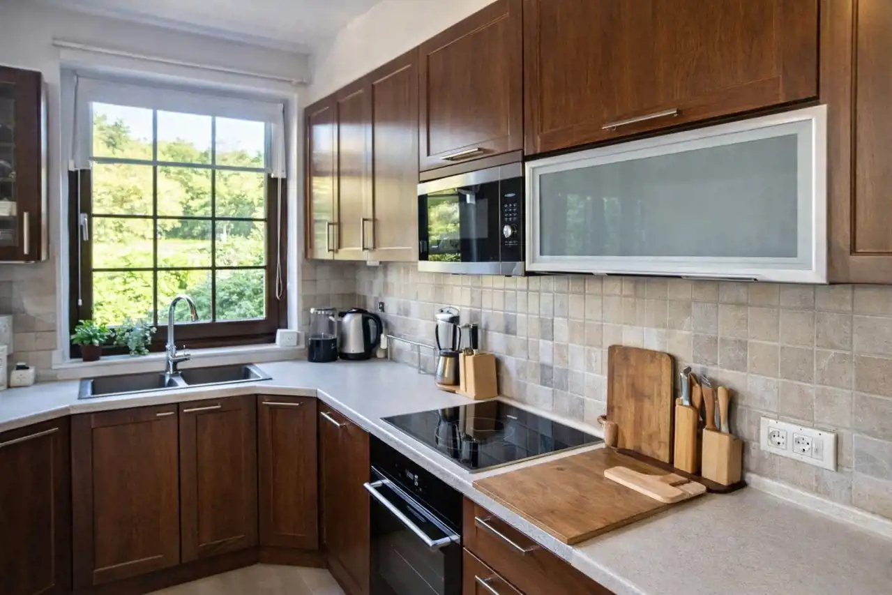 Na parterze znajduje się przestronny salon z jadalnią oraz aneksem kuchennym, z którego prowadzi wyjście na taras i ogród. Kuchnia pozostaje w pełnej zabudowie wraz ze sprzętem AGD. Na tej kondygnacji znajduje się również funkcjonalna przestrzeń dzienna zapewniająca wygodę codziennego użytkowania.