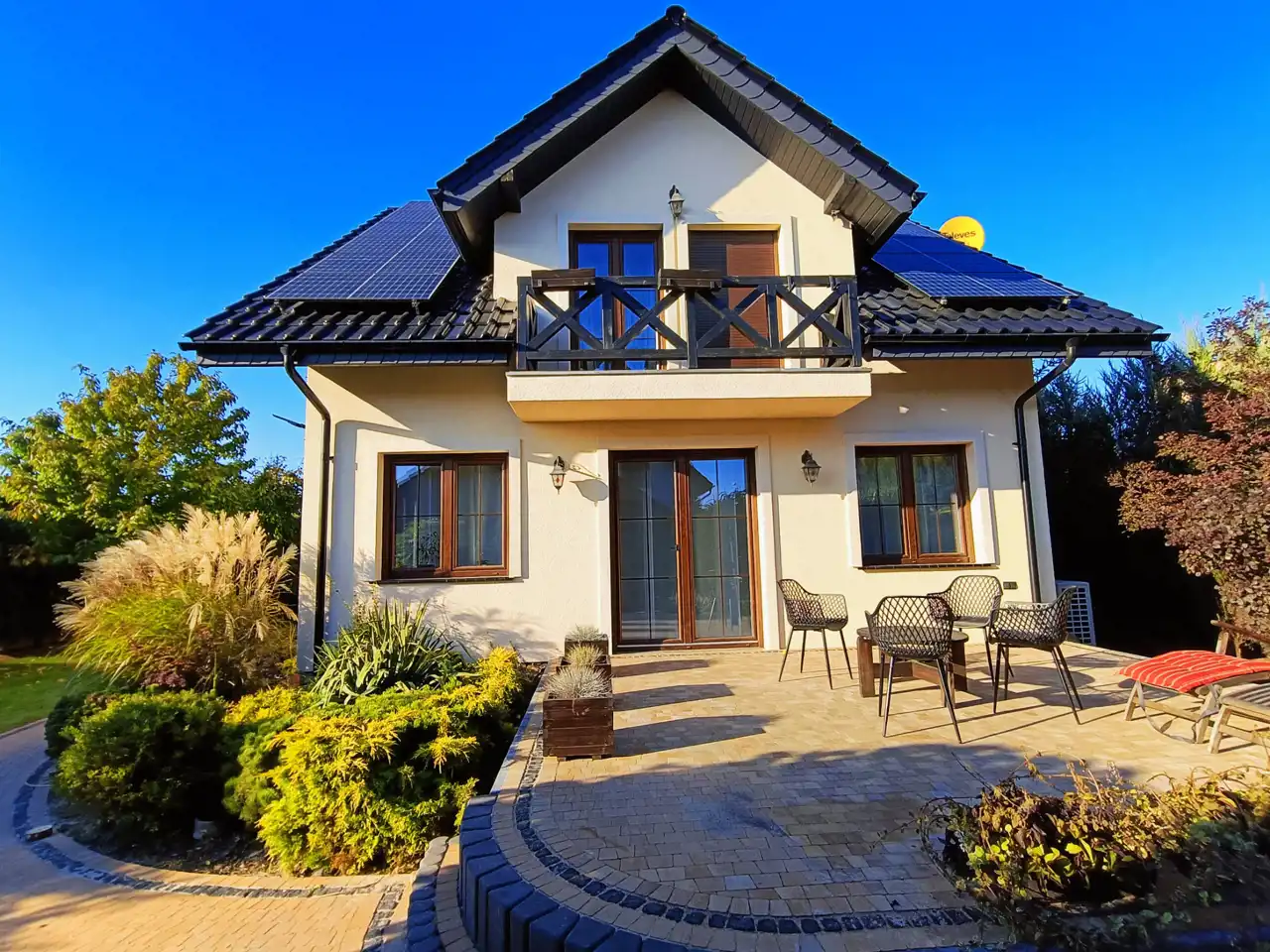 Dom posiada dwa balkony oraz taras 30 m2. Na terenie działki jest osobny garaż dwustanowiskowy.