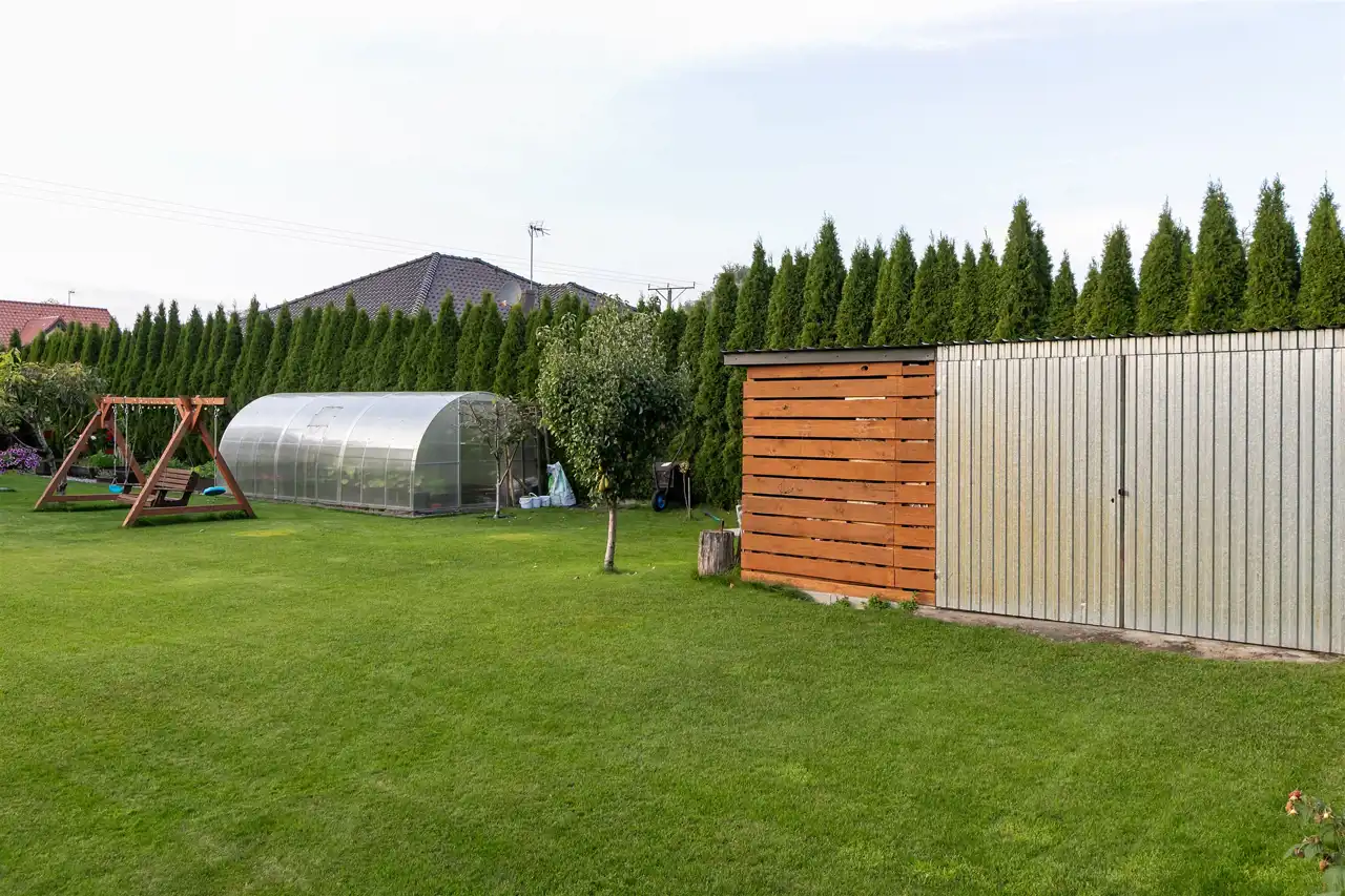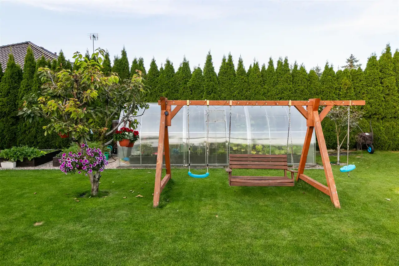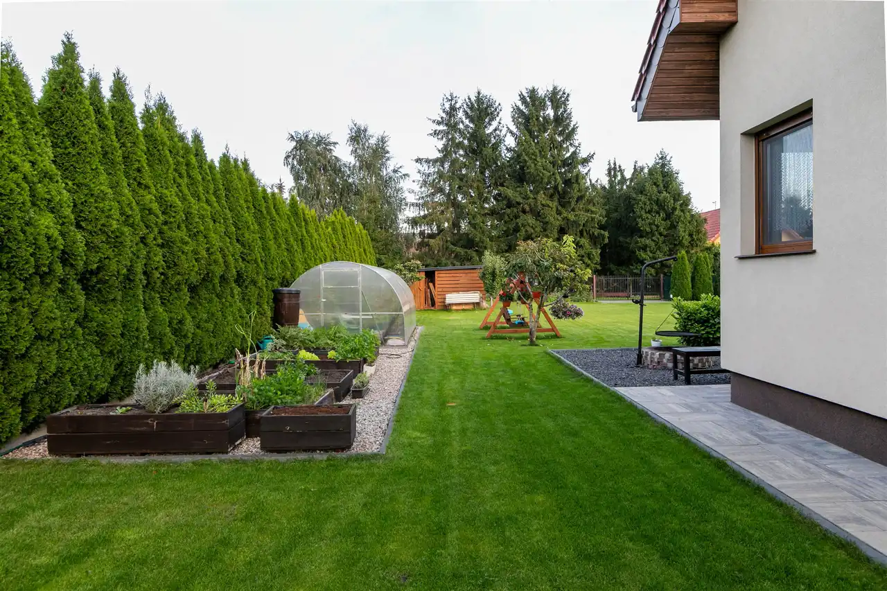 Strefa grillowa, rabaty kwiatowe i miejsce na warzywnik.