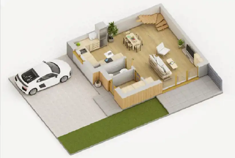 Bardzo funkcjonalny rozkład pomieszczeń, który wpływa na codzienną wygodę każdego z domowników. Duże i jasne salony połączone z kuchnią stanowią doskonałą przestrzeń do wspólnego spędzania czasu całej rodziny. Piętro to pokoje dla dzieci, gabinet lub sypialnie rodziców. Strefa na piętrze daje prywatność i intymność co istotnie wpływa na komfort życia.