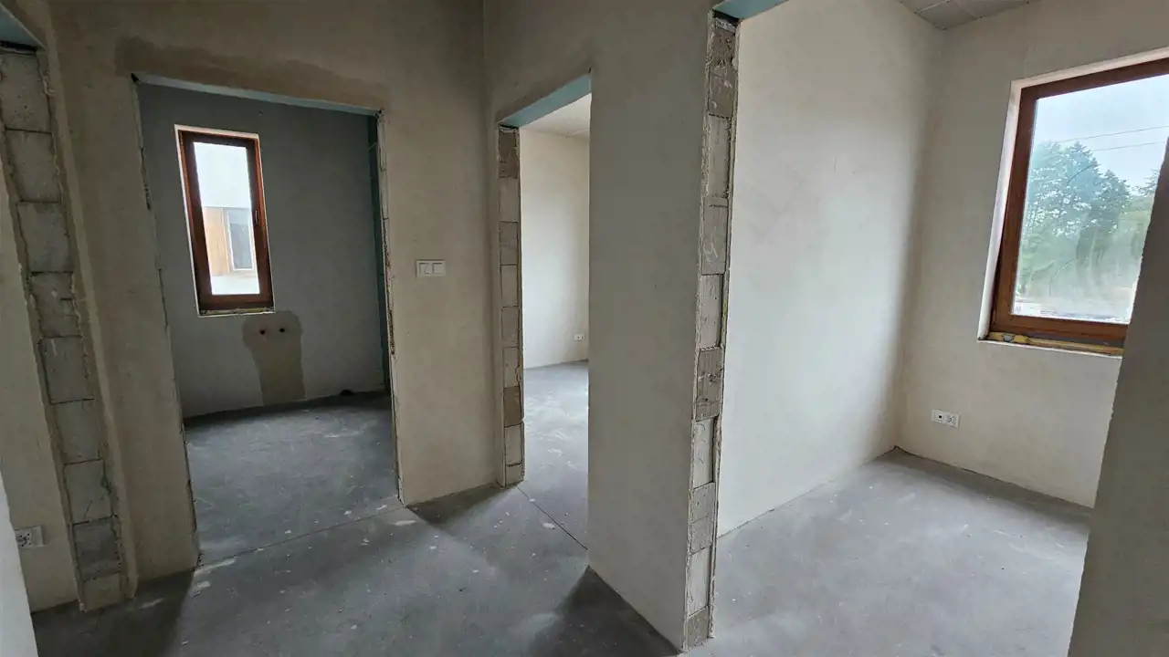 Standard wykończenia: stan deweloperski, ogrzewanie podłogowe, elewacja zewnętrzna wykończona, ogrodzenie oraz kostka brukowa na podjeździe.