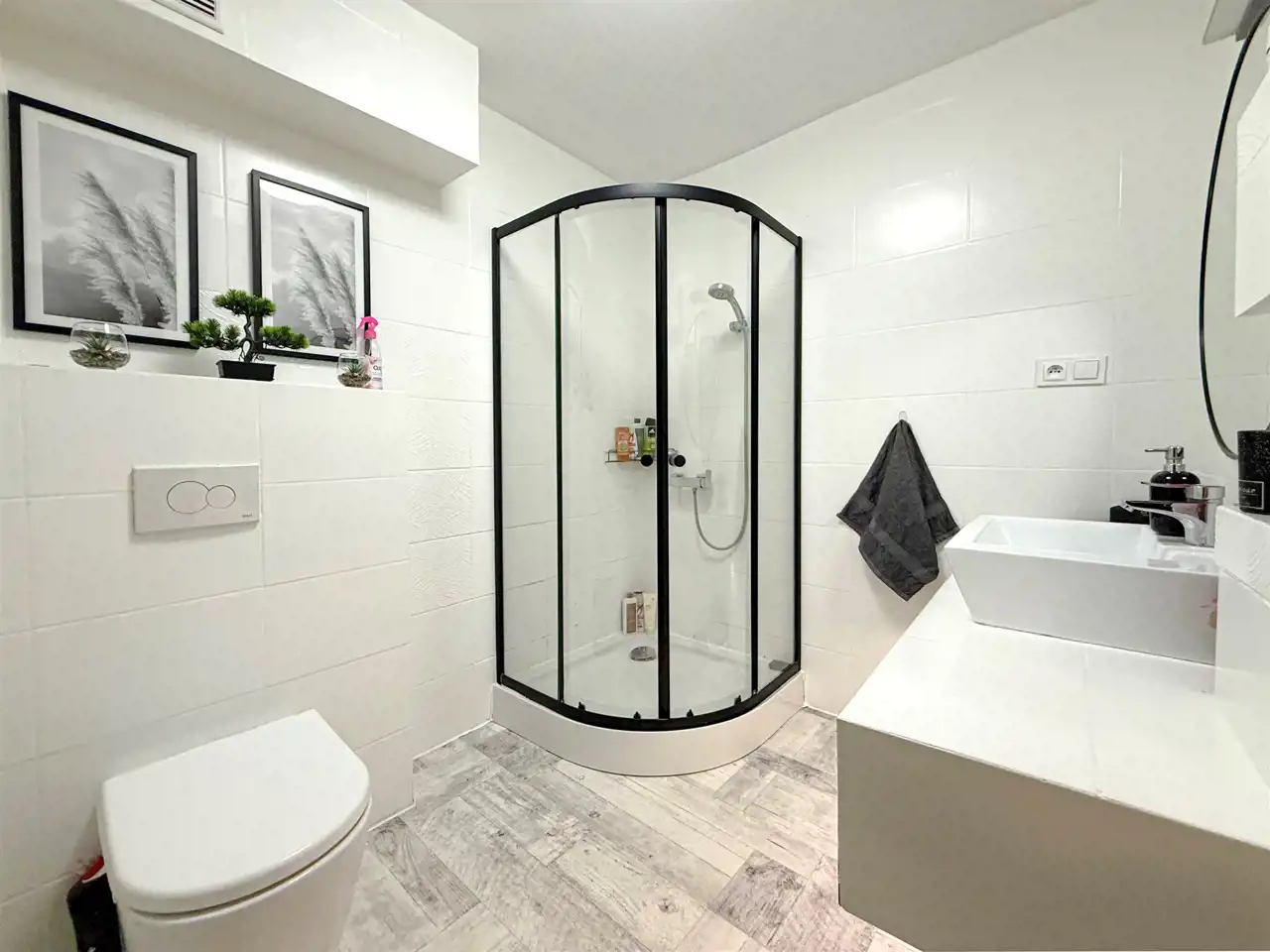 Łazienka – wygodna i funkcjonalna z prysznicem.