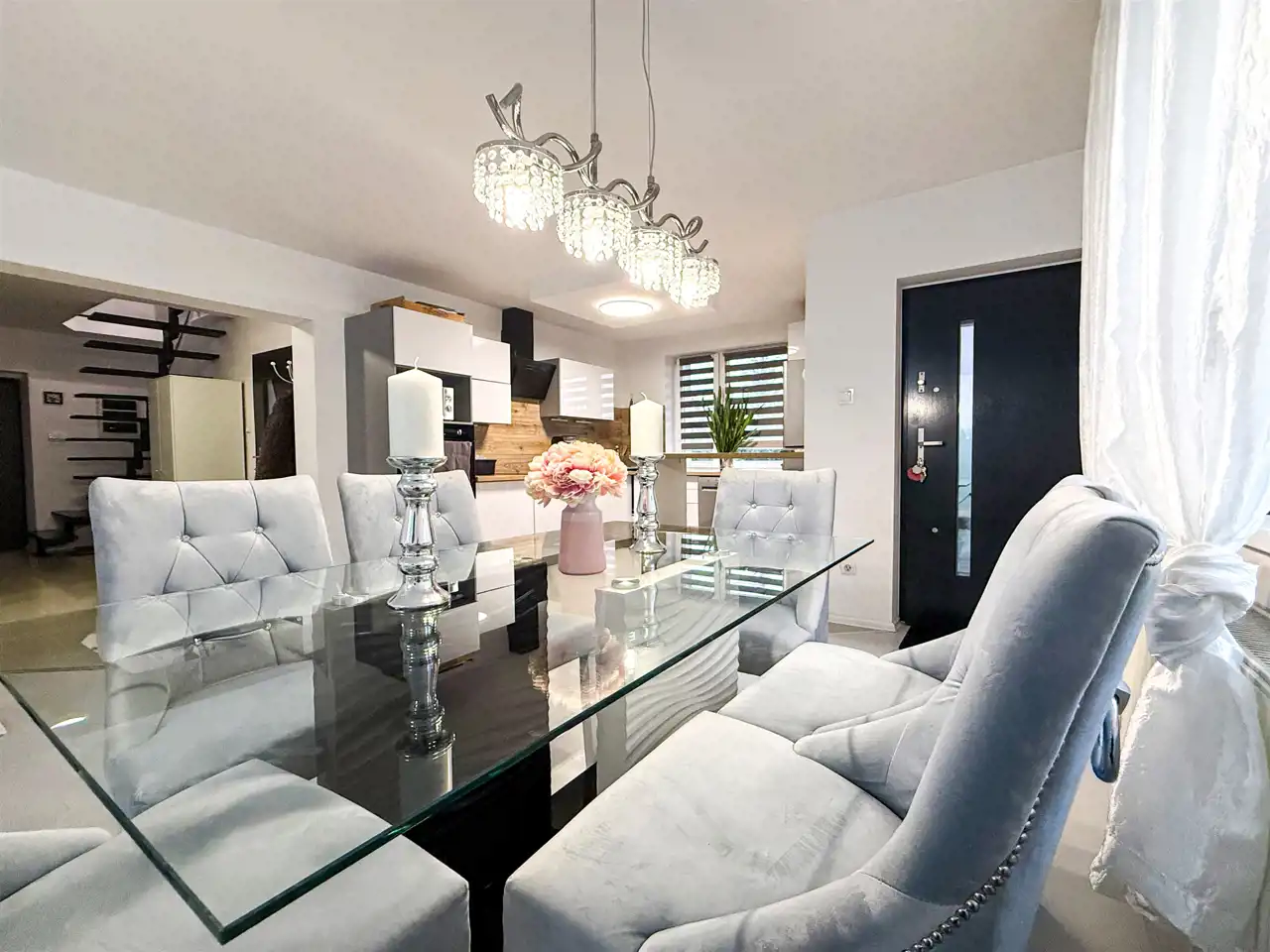 Przestronny salon z jadalnią i aneksem kuchennym – serce domu, otwarte, jasne i sprzyjające spędzaniu czasu z bliskimi oraz spotkaniom z gośćmi.