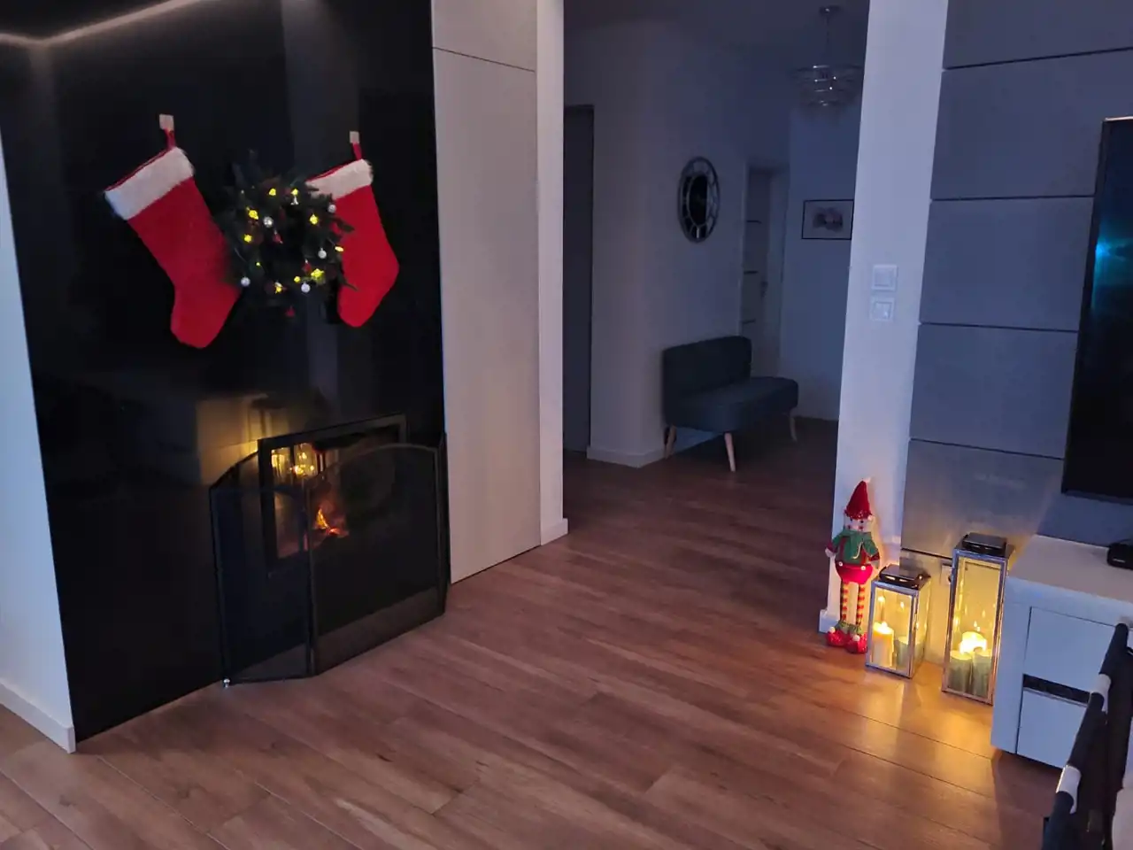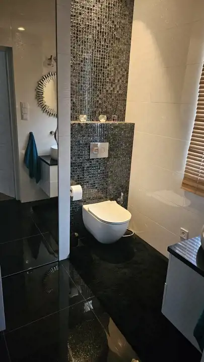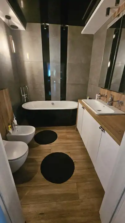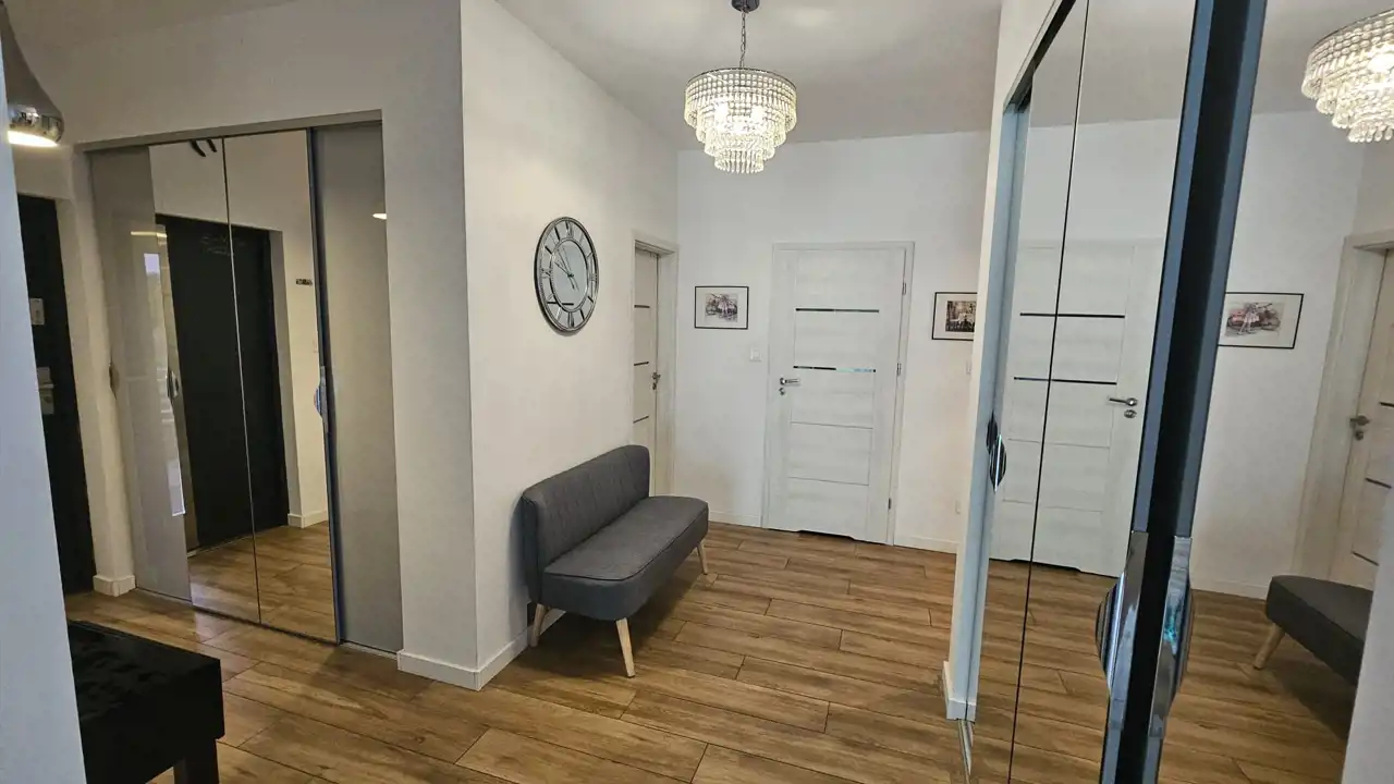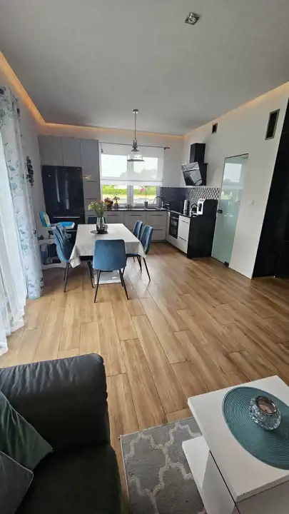 Salon z aneksem kuchennym, 4 sypialnie , 2 łazienki z opcja natrysku i wanną.