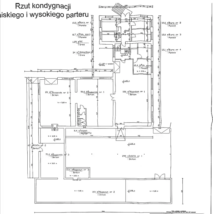 3 magazynów o powierzchniach: 299 m², 13 m², 190 m²,