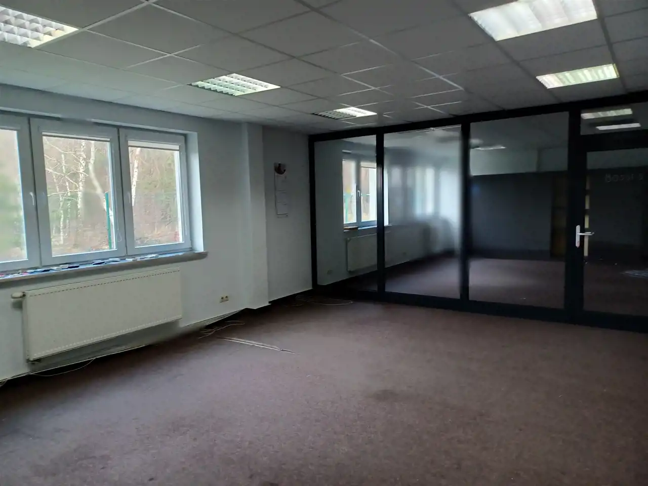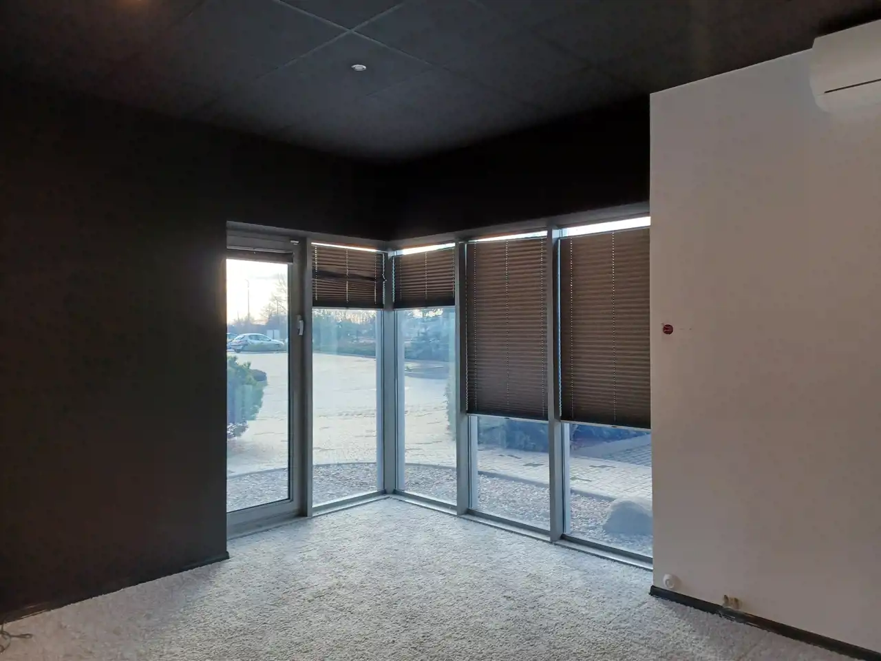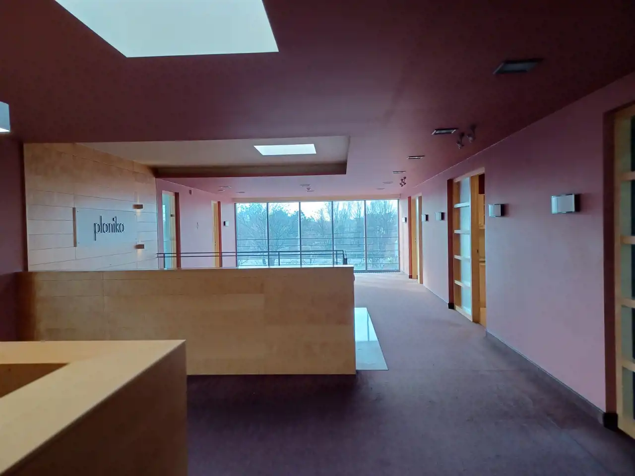 Biura z klimatyzacją, część z dużymi panoramicznymi oknami.
