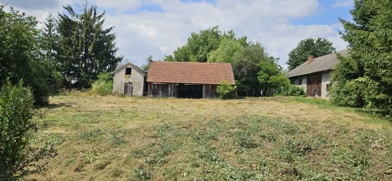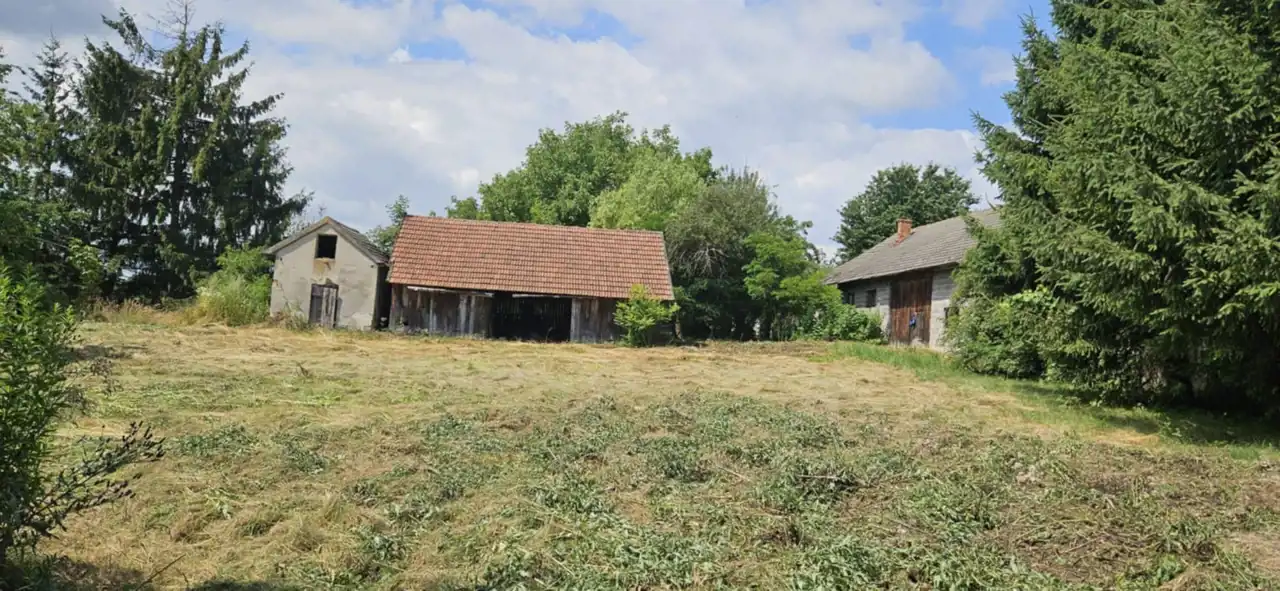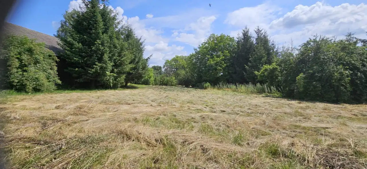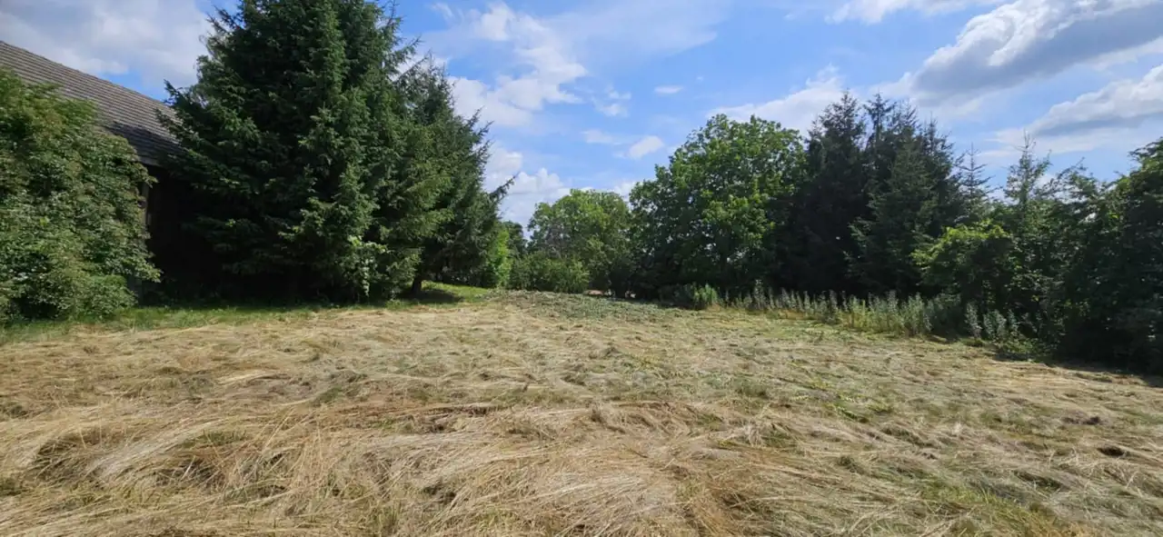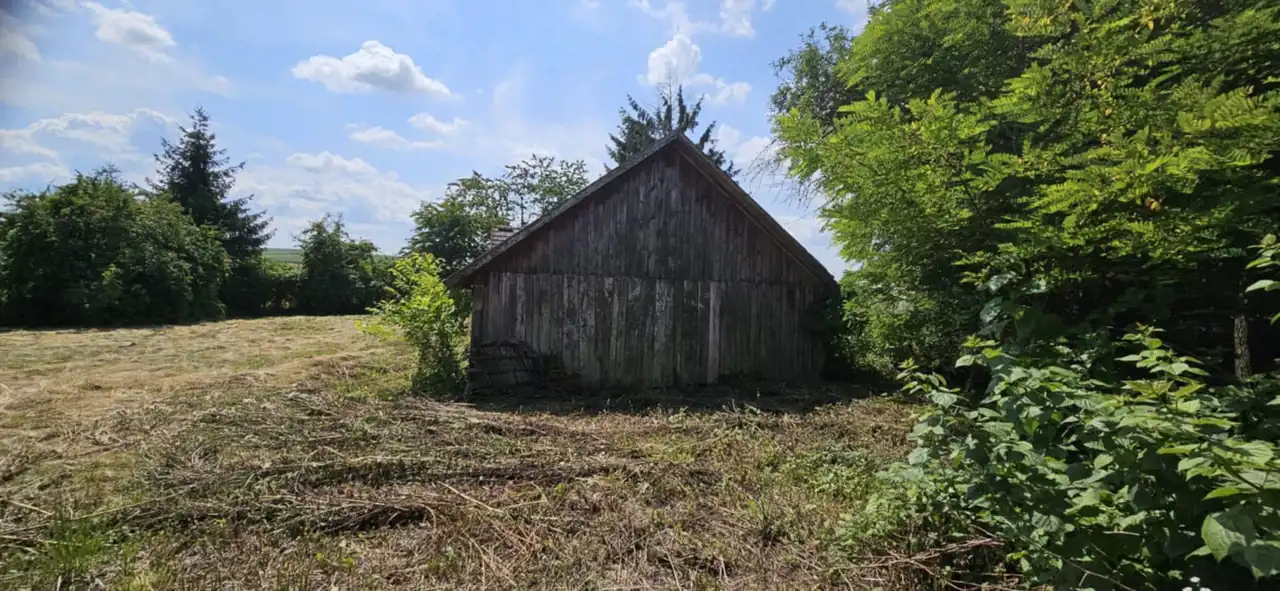 Działka o pow. 2377m2( 23,77a), szeroka przy drodze 29m, długa na 84m, piękny starodrzew na granicach działki, czereśnie, orzech ,jabłonka, wiśnie sokowe i dużo choinek ..działka zielona i odgrodzona roślinnością od drogi i po obu stronach . Na działce stare budynki ; suszarnia i stodoła z dachówką . Budynki pozostawione aby było szybciej i prościej z budową nowego domu lub remontem/rozbudową.