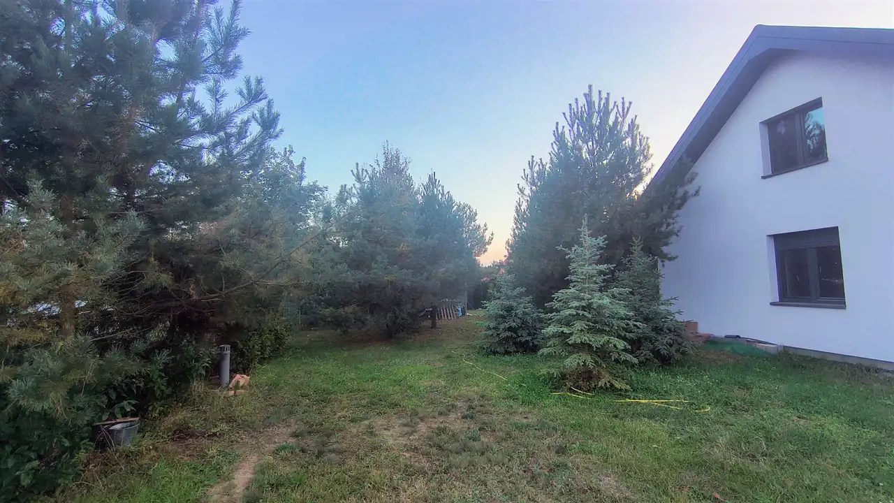 Dom położony jest na dużej, 1000-metrowej działce, na której jest mały lasek i dużo zieleni. W otoczeniu nowa zabudowa jednorodzinna. Trochę na uboczu, ale jednocześnie do drogi na Płońsk lub na Joniec. Na posesję zjazd z drogi asfaltowej. Całość ogrodzona z ładną bramą wjazdową na pilota oraz furtką wejściową.