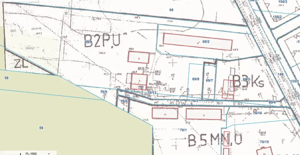 - działka ewidencyjna nr 70/1, powierzchnia: 0,7495 ha, użytki gruntowe: Ba, LsVI