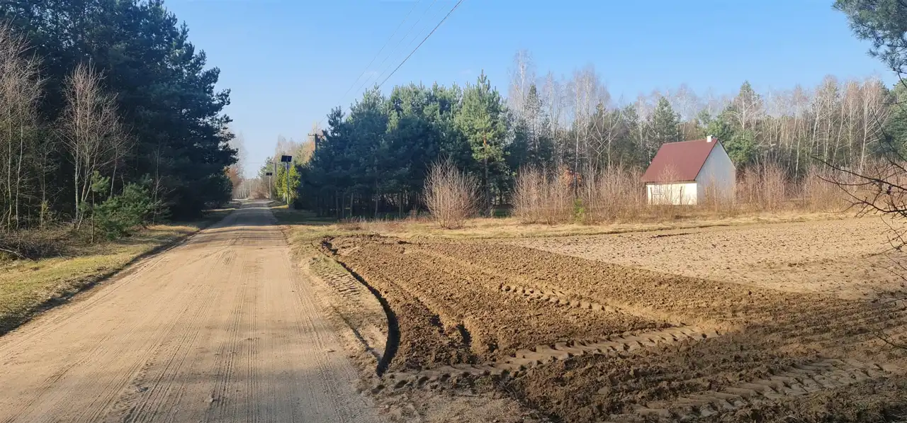 Działka ma 1,10 ha, ale jest wąska około 20m szerokości. Położona jest w przepięknym miejscu wśród lasów, blisko do rzek bo właśnie przechodzi tam kilka rzek, Jak Wkra, Sona i mniejsze. Ze względu że jest wąska nie można wytyczyć wzdłuż drogi żeby ją podzielić na małe. Zakup całej działki na postawienie domku gdyż w drodze przy działce jest prąd i woda z wodociągu. Może każdy taką działkę kupić nie będąc rolnikiem ja pomagam w uzyskaniu zgody KOWRu na zakup.