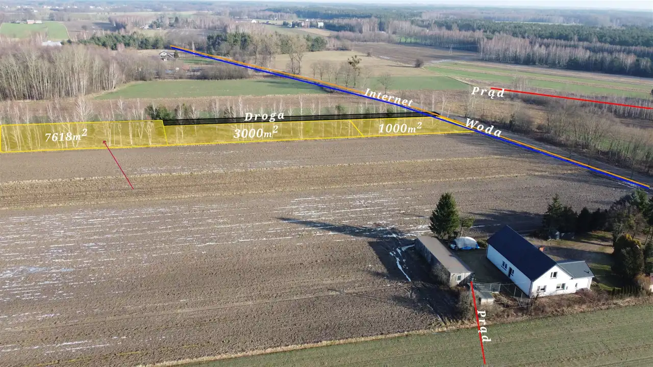 1000m2, 26x36m, szerokość frontu: 36m, woda w ulicy, prąd w trakcie realizacji