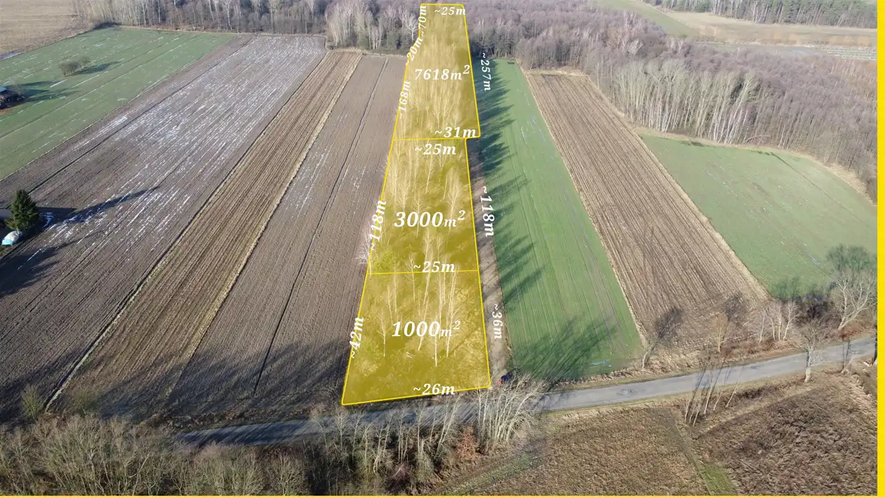 3000m2, 25x118m, szerokość frontu: 118m