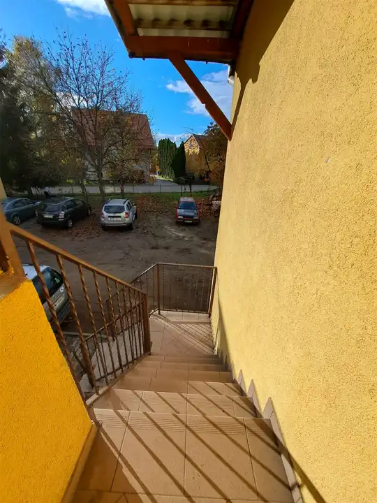 - na piętrze mieszkanie (kawalerka) z wejściem od strony podwórza. Funkcje pomieszczeń: korytarz, wc z kabiną prysznicową, kuchnia i pokój o wymiarach 4,60m x 4,60m (wysokość w pomieszczeniach 2,23m).