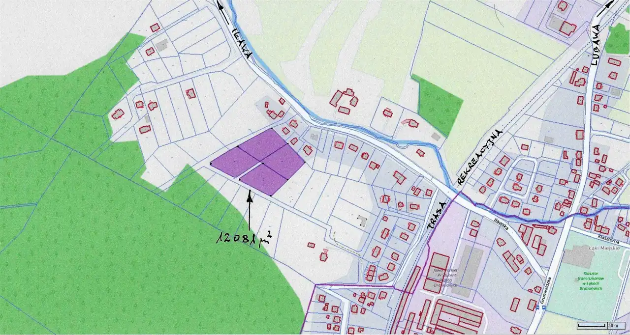 - Znajdują się one w większym kompleksie działek z dominującą nowoczesną zabudową mieszkaniową 1-rodzinną.