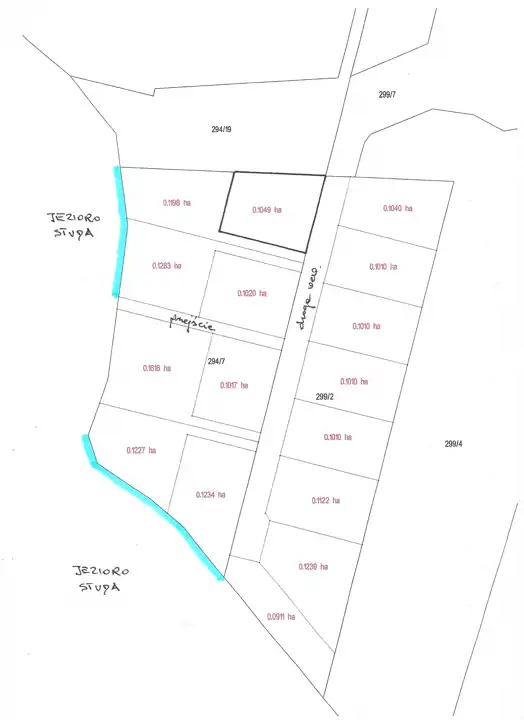 - Działka o pow. 1049m2 z dostępem do pobliskiego jeziora. W kameralnym kompleksie działek letniskowych.