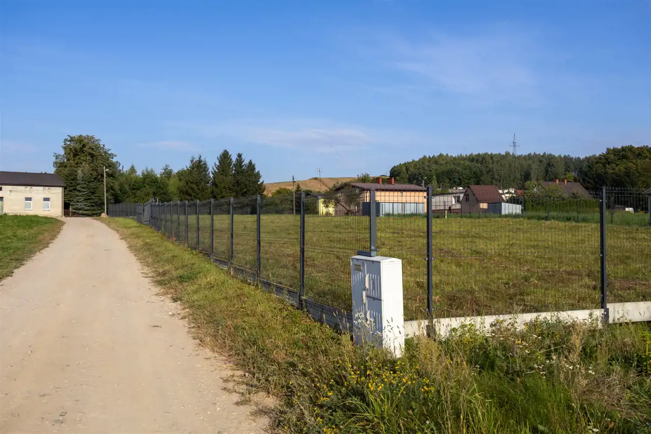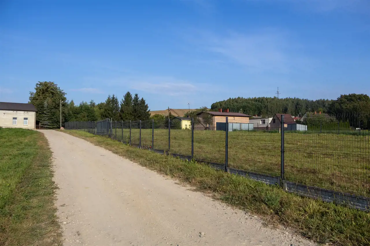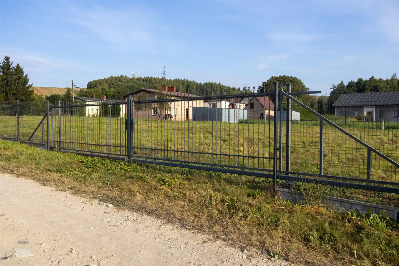 Działka jest w całości ogrodzona ogrodzeniem panelowym na podmurówce betonowej, brama wjazdowa o szerokości 8m, przesuwna dwuskrzydłowa.