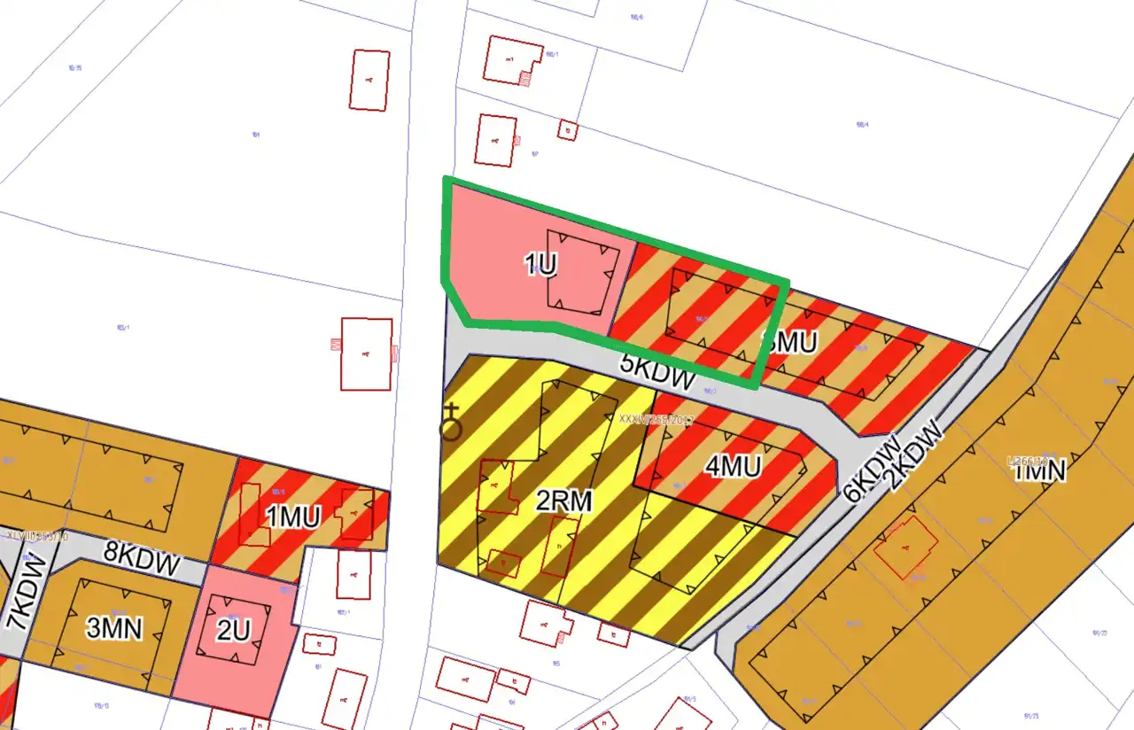 Działki przeznaczone w planie zagospodarowania przestrzennego na cele zabudowy usługowej (pierwsza działka od drogi) oraz mieszkaniowo-usługowej (działka w drugiej linii zabudowy). Istnieje możliwość realizacji na całej nieruchomości zabudowany usługowej, nie jest wymagana zabudowa mieszkaniowa.