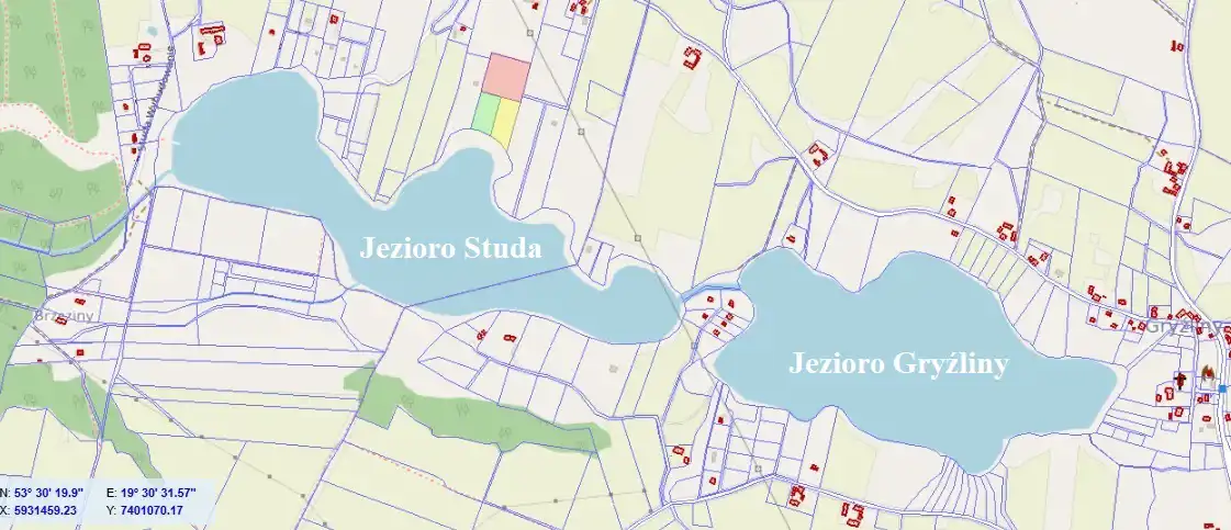 Dwie z działek mają bezpośredni dostęp do Jeziora Studa, trzecia (największa) będzie miała zapisany dostęp do jeziora w akcie notarialnym.