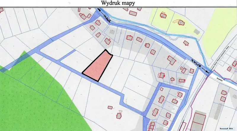 - Działka rolna. Bez Planu Miejscowego. Graniczy ona m.in. z działkami zabudowanymi domami 1-rozdzinnymi.