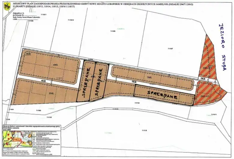 - W sąsiedztwie, bliżej jeziora, możliwość kupna (pow. wg potrzeb) działek nr 110/24 o pow. 0,2516 ha - 175 000 zł i działka nr 110/22 o pow. 0,5621 ha - 400 000 zł oraz nad jeziorem Studa działka nr 110/26 o pow. 0,3420 ha - 470 000 zł.