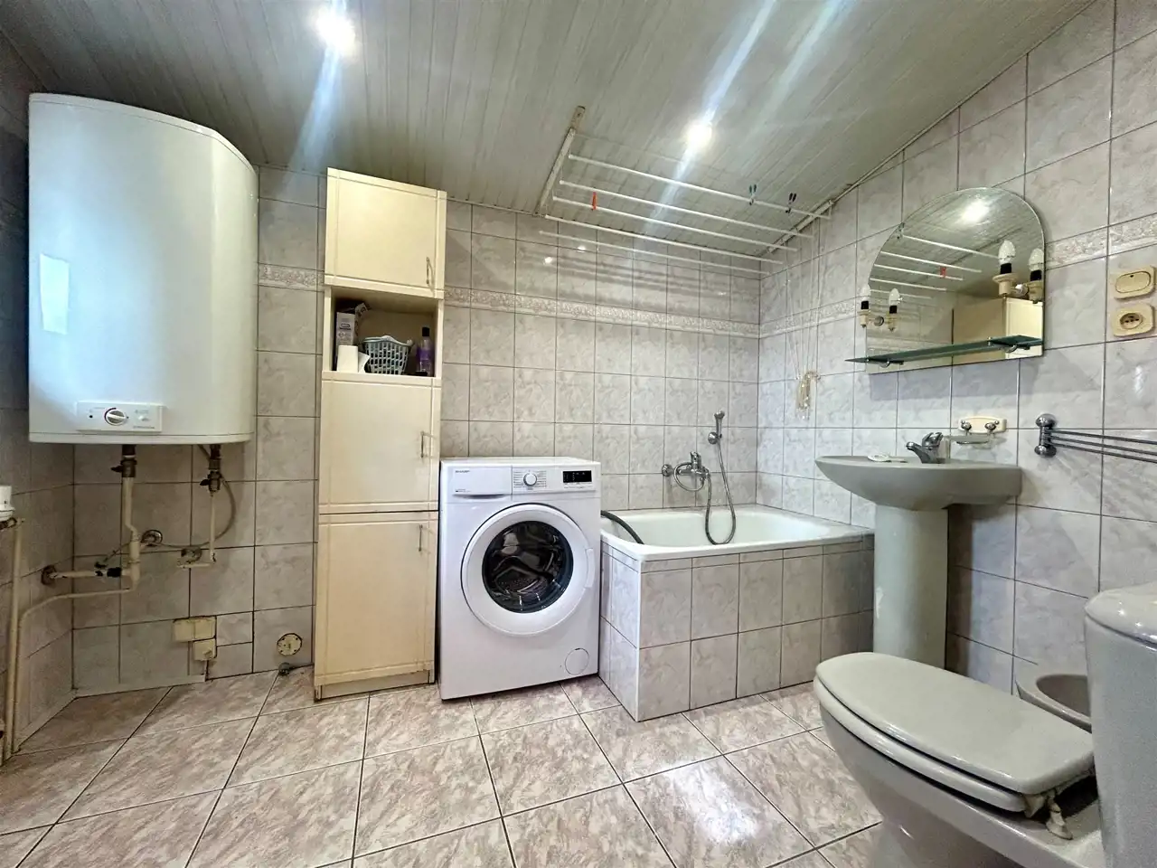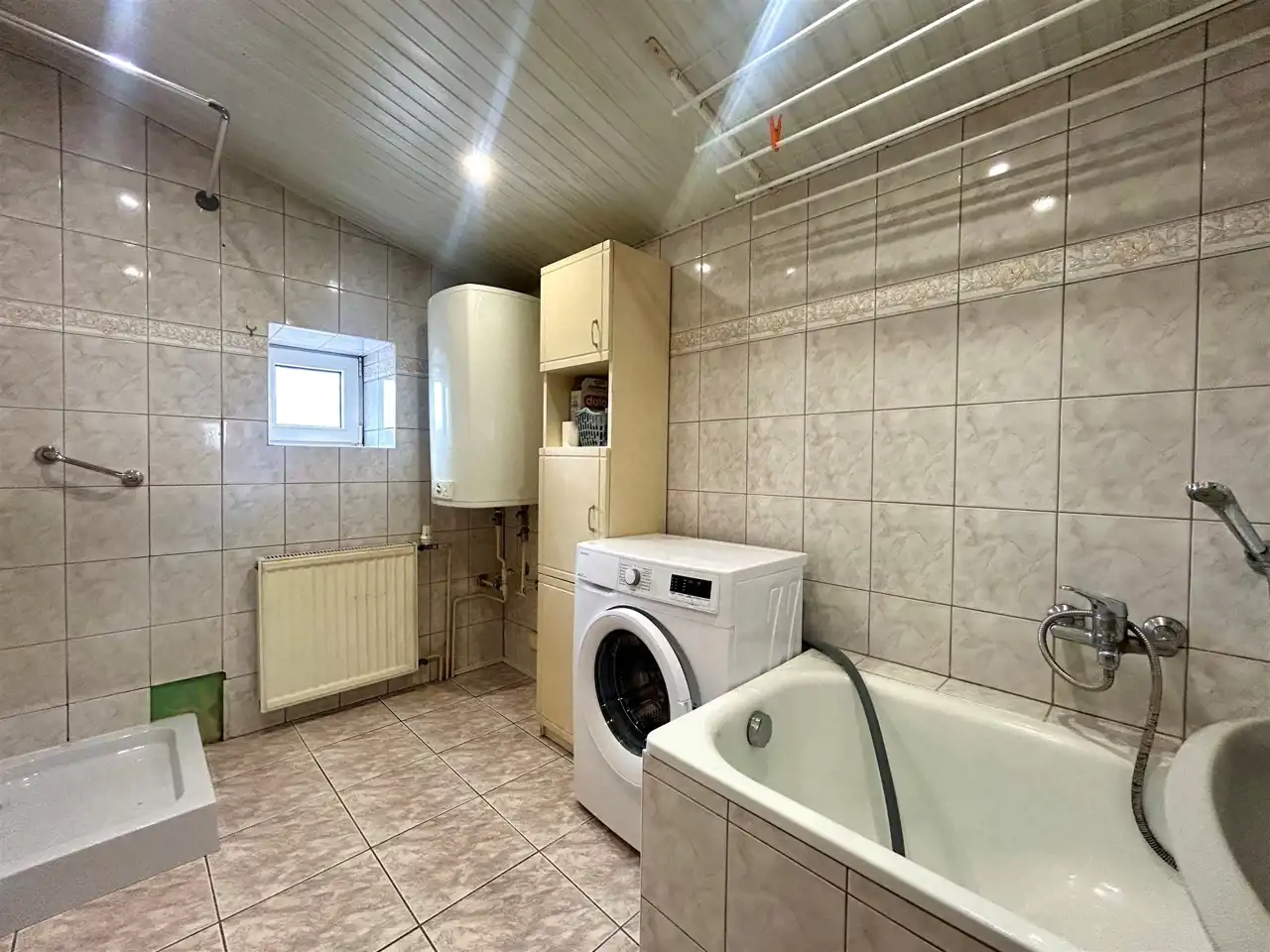 Ogrzewanie zapewnia piec gazowy dwufunkcyjny, zlokalizowany na parterze budynku, w pomieszczeniu wspólnym, które może być również wykorzystywane jako suszarnia. To praktyczne rozwiązanie zwiększa komfort użytkowania.