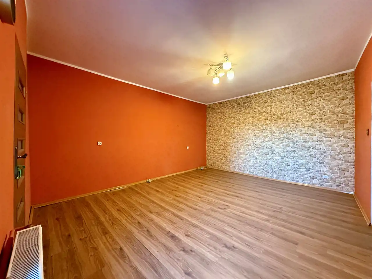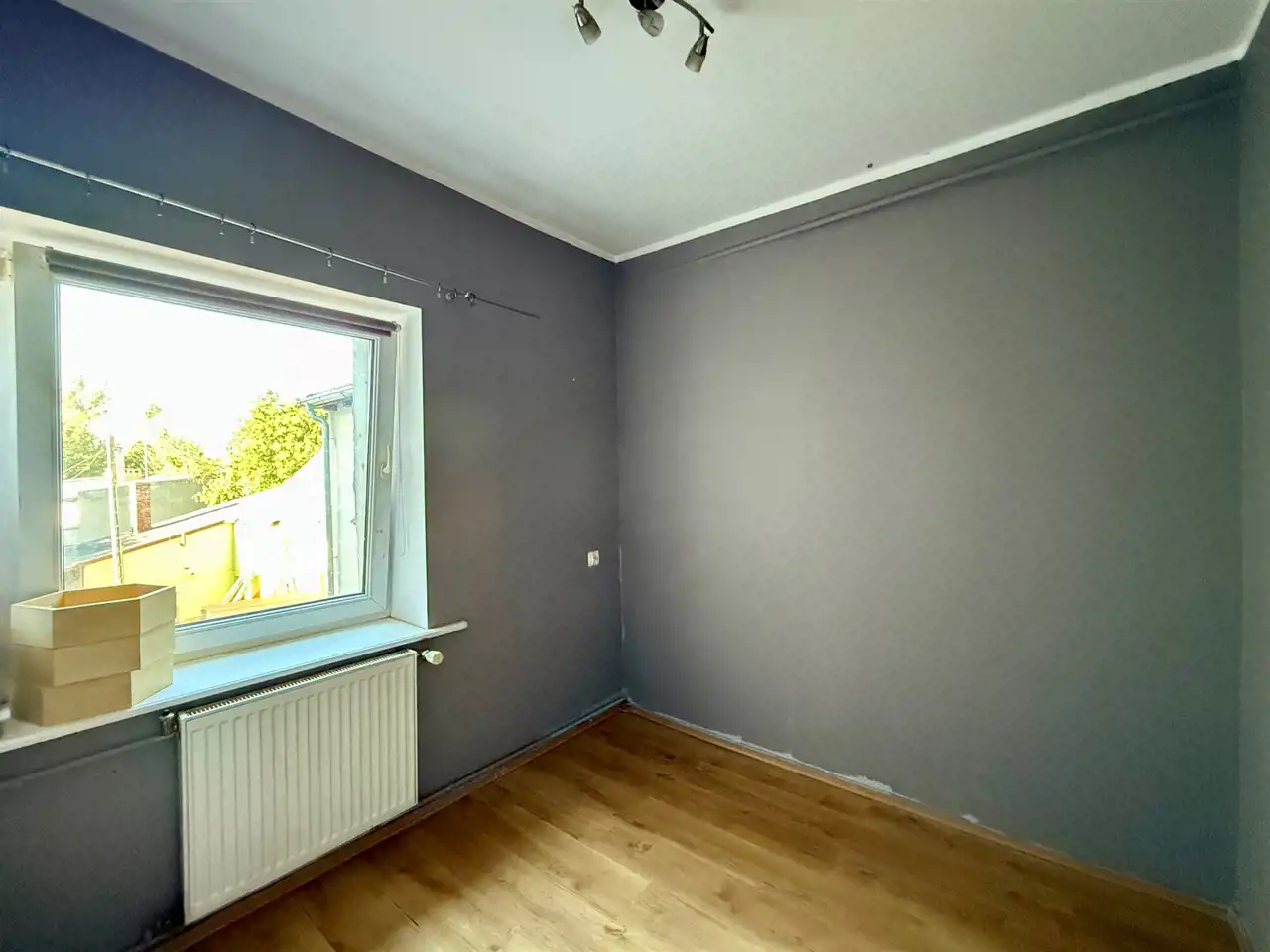Na ścianach położono gładzie, a na podłogach znajdują się panele.