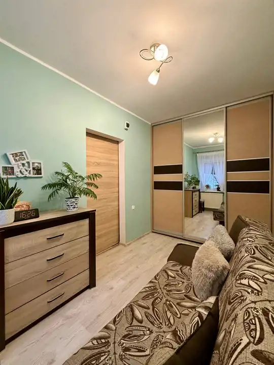 komfortowa sypialnia z dużą szafą w zabudowie,