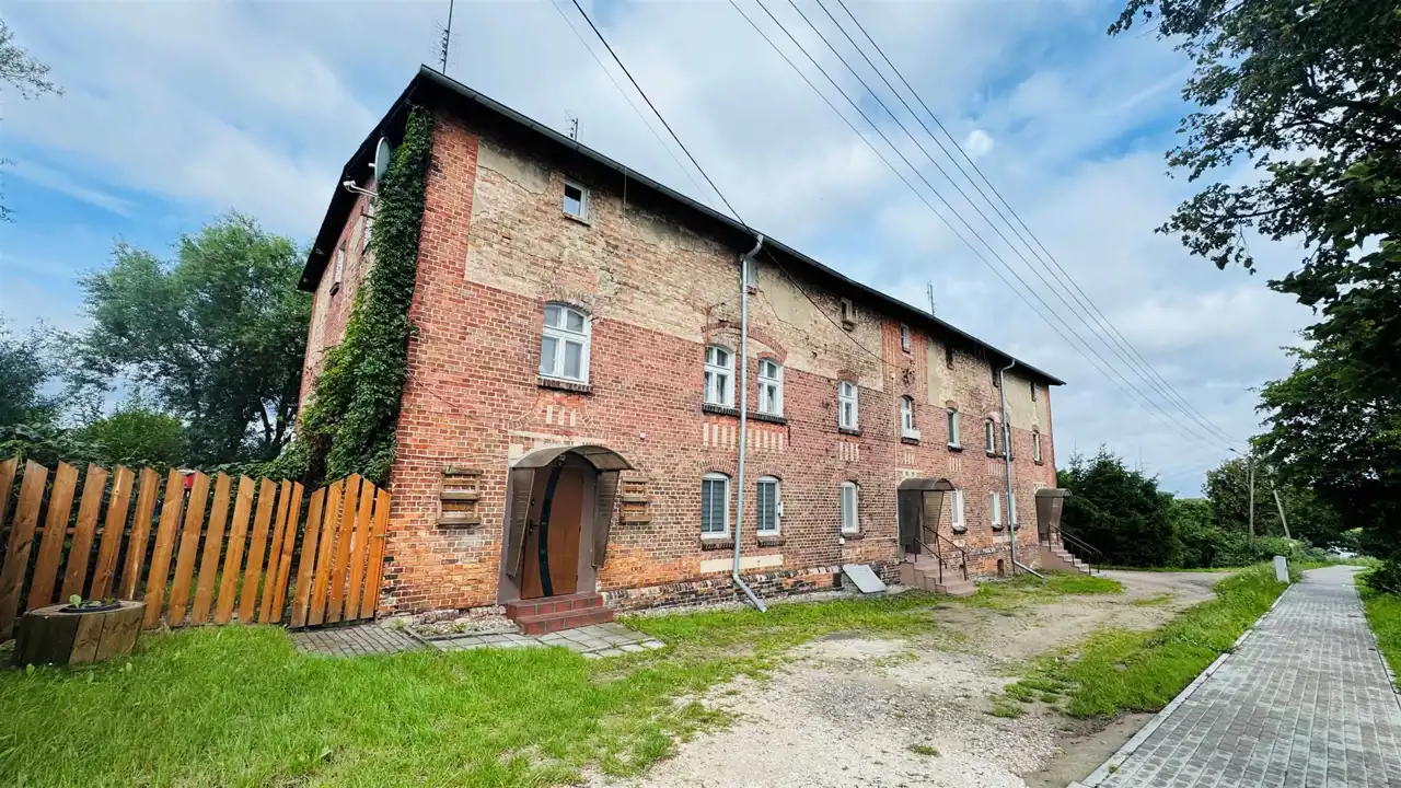 Budynek, w którym usytuowane jest mieszkanie, został wybudowany przy użyciu cegły wraz z komorą powietrzną (tzw. mur pruski). Mieszka w nim łącznie dziesięć rodzin. Każdoczesny właściciel oferowanej nieruchomości posiada udziały w nieruchomości gruntowej o powierzchni 2501 m2 zlokalizowanej pod budynkiem i w okolicy. Lokal będący przedmiotem sprzedaży posiada udział w wysokości 9,60%, czyli 240,10 m2. Powierzchnia ta została rozłożona pomiędzy grunt pod garaż oraz na przydomowy ogród.