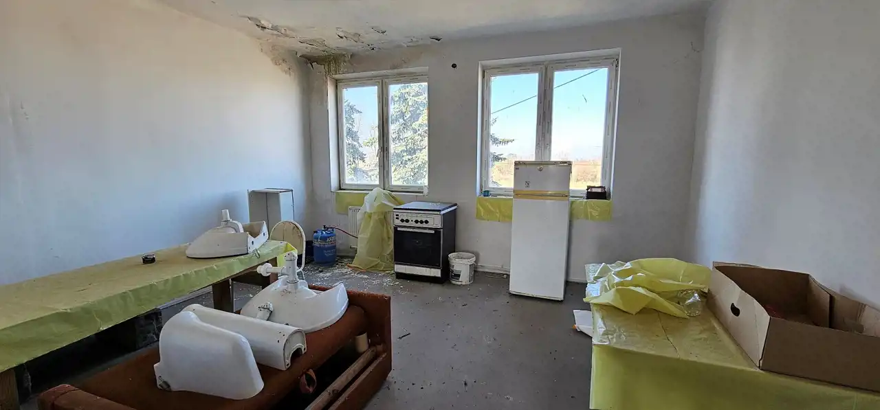 Sprzedam obiekt biurowo produkcyjny w Nowych Ostrowach. Budynek o powierzchni 433 mkw. na dwóch kondygnacjach, murowany z cegły kryty papą termozgrzewalną, Stropy betonowe. Podzielony na wiele pomieszczeń wewnętrznych z oknami. Rozpoczęty remont generalny. Częściowo zrobione instalacje, wylewki i tynki. Własne szambo. Woda miejska. Powierzchnia działki 1596 mkw. Na działce drugi budynek murowany parterowy w złym stanie technicznym.