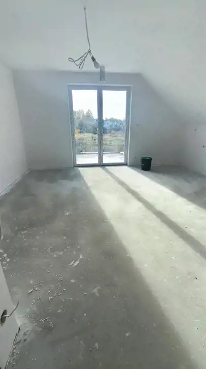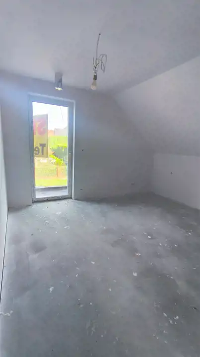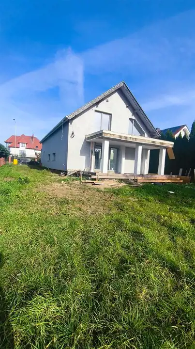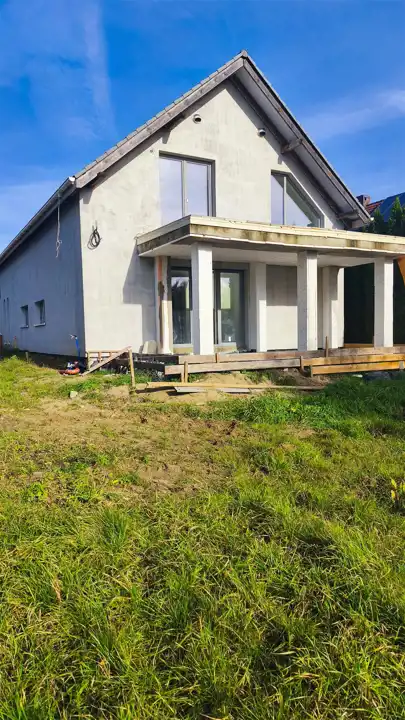 Na sprzedaż nowoczesny dom jednorodzinny o powierzchni użytkowej 200 m², położony w spokojnej okolicy domów jednorodzinnych. Nieruchomość wyróżnia się funkcjonalnym układem pomieszczeń oraz wysokim standardem wykonania. Na parterze znajduje się wiatrołap, korytarz, toaleta, pokój gościnny, przestronny salon z aneksem kuchennym oraz pomieszczenie techniczne. Z salonu prowadzi wyjście na duży taras z widokiem na malowniczą łąkę i bezpośrednim dostępem do ogrodu. Na piętrze zaplanowano komfortową sypialnię główną z garderobą i wyjściem na taras, dwie mniejsze sypialnie z balkonem, przestronny pokój kąpielowy oraz pomieszczenie gospodarcze. Dom posiada garaż dwustanowiskowy w bryle budynku, ogrzewanie podłogowe oraz system rekuperacji, co zapewnia wysoki komfort użytkowania i energooszczędność. Budynek jest w stanie deweloperskim, w trakcie wykończenia, co daje możliwość aranżacji wnętrz według własnych potrzeb. Działka o powierzchni 400 m² z dodatkową dzierżawą 200 m² stanowi idealną przestrzeń do wypoczynku i rekreacji. W odległości około 500 metrów znajdują się sklepy, placówki medyczne, szkoły oraz przedszkola, co sprawia, że lokalizacja jest wyjątkowo wygodna dla rodzin z dziećmi. To idealna propozycja dla osób poszukujących komfortowego i nowoczesnego domu w otoczeniu zieleni, a jednocześnie z szybkim dostępem do miejskiej infrastruktury.
