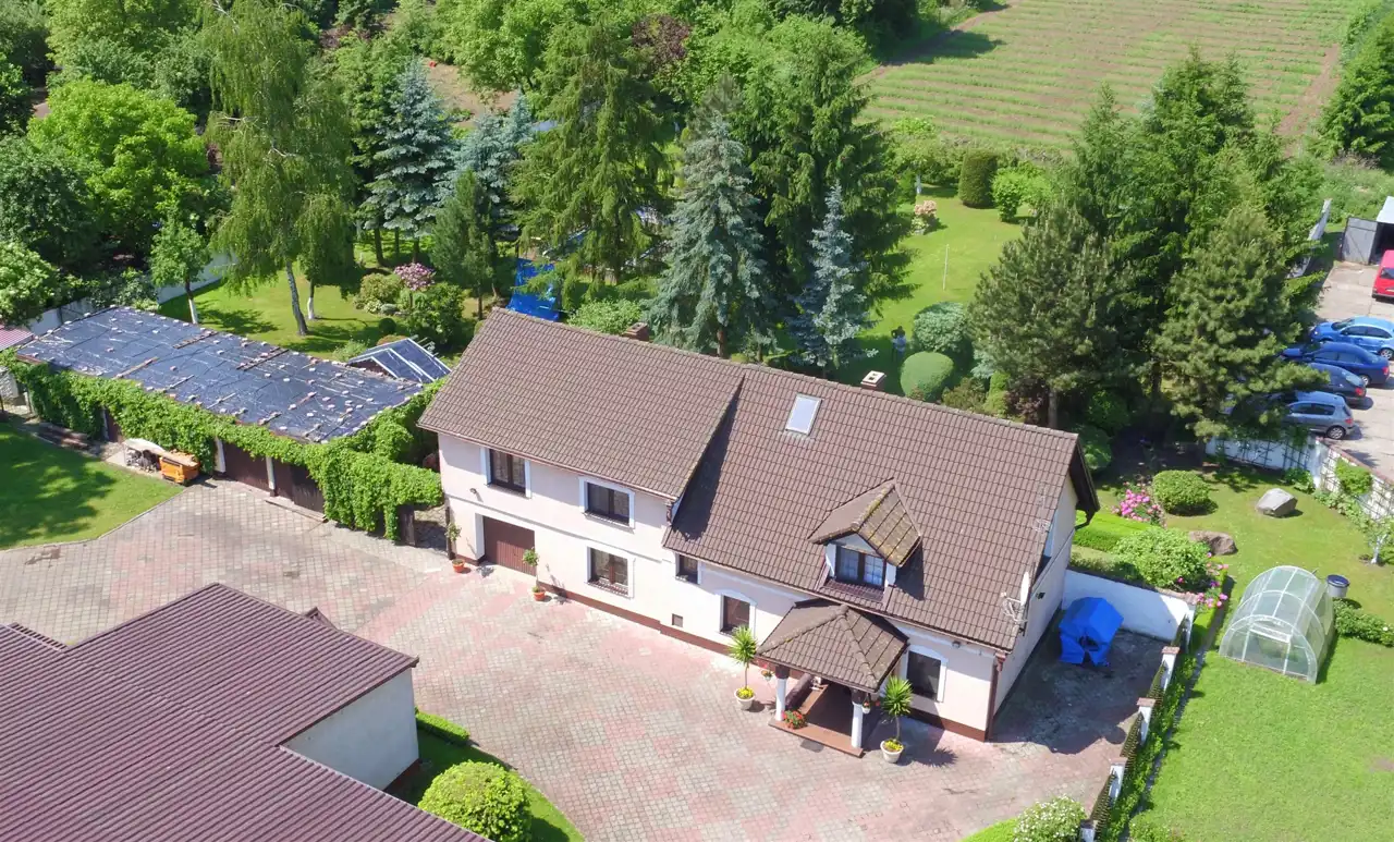 Dodatkowo na posesji wybudowano dwa garaże oraz mini warsztat (90m2)