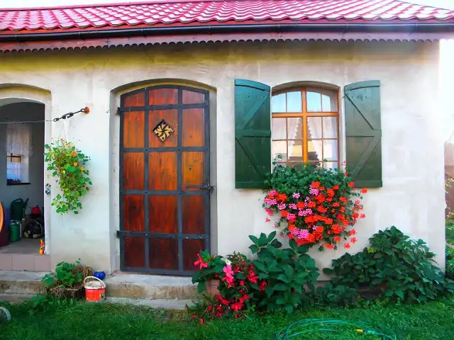 Dom został wybudowany z wykorzystaniem części starszego budynku. Ściany zewnętrzne i wewnętrzne z porotermu z izolacją styropianem, od dachu wełną mineralną. Dach kryty dachówką ceramiczną szkliwioną. Przy domu jest piwniczka-pomieszczenie gospodarcze o powierzchni 9m2. Praktycznie dom nie podpiwniczony, bardzo dobrze izolowany przeciwwilgociowo i termicznie od podłoża.