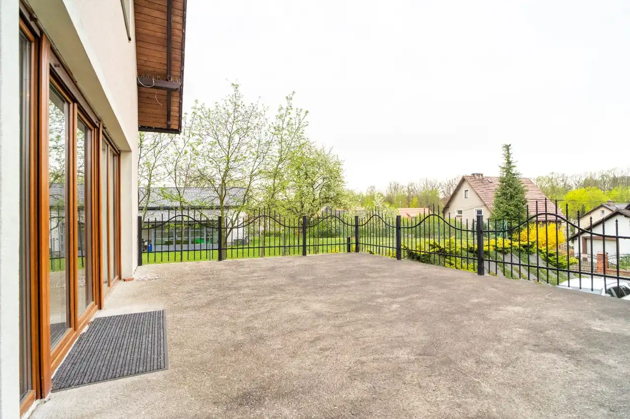 * przestronny salon z kominkiem i wyjściem na duży taras,